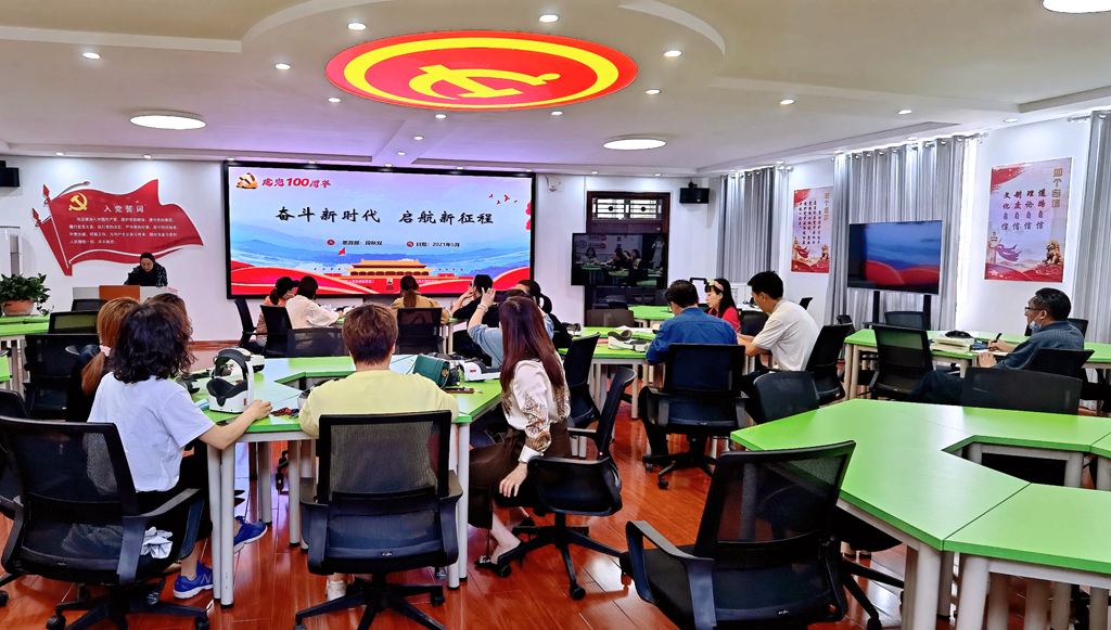 2021年是中国共产党成立100周年,为了庆祝这一盛大时刻,人文艺术学院党支部组织全体党员教师在思政教育虚拟仿真教育中心,深情回顾了中国共产党百年光辉历程和伟大功绩,认真聆听了思政部段秋双老师的精彩党课,进行了一次别开生面、生动鲜活的“学党史、强信念、跟党走”主题党日活动,接续了红色基因,激活了干事创业的活力,焕发了前所未有的热情。