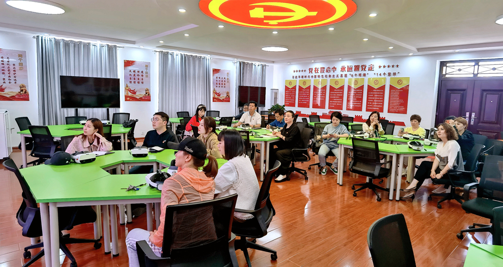 全体党员教师通过VR全景体验技术,更加直观、立体的感受到中国共产党建党的光辉历程。亲临“中共一大会址”永葆理想和信念,重温井冈山上的革命斗争精神,感受“爬雪山、过草地”的艰辛历程,体验“飞夺泸定桥”的豪迈和铁血交崩的壮美,见证“中国航天事业”的新高度……
