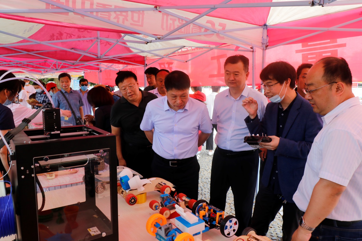 在活动现场,田新现陪同市人大教工委主任胡献民、市教体局副局长郭志勇一行到我院展区走访参观,我院的食品加工、电子商务、机电工程等相关技能展示,受到了出席领导和参观者的一致好评。