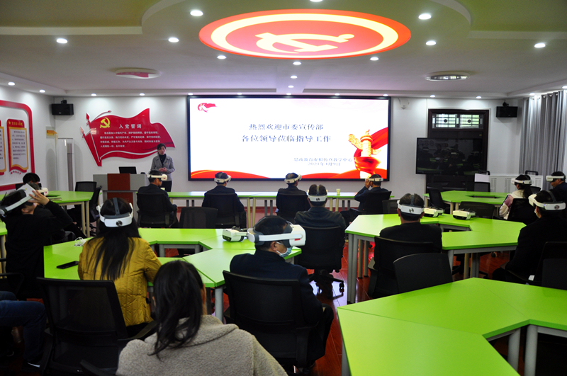 4月9日上午,平顶山市委宣传部副部长杨冰、二级调研员黄松涛、三级调研员李贵洪、尹世钊等一行20余人来我院思政教育虚拟仿真教学中心进行党史学习教育,院党委宣传部负责同志陪同。