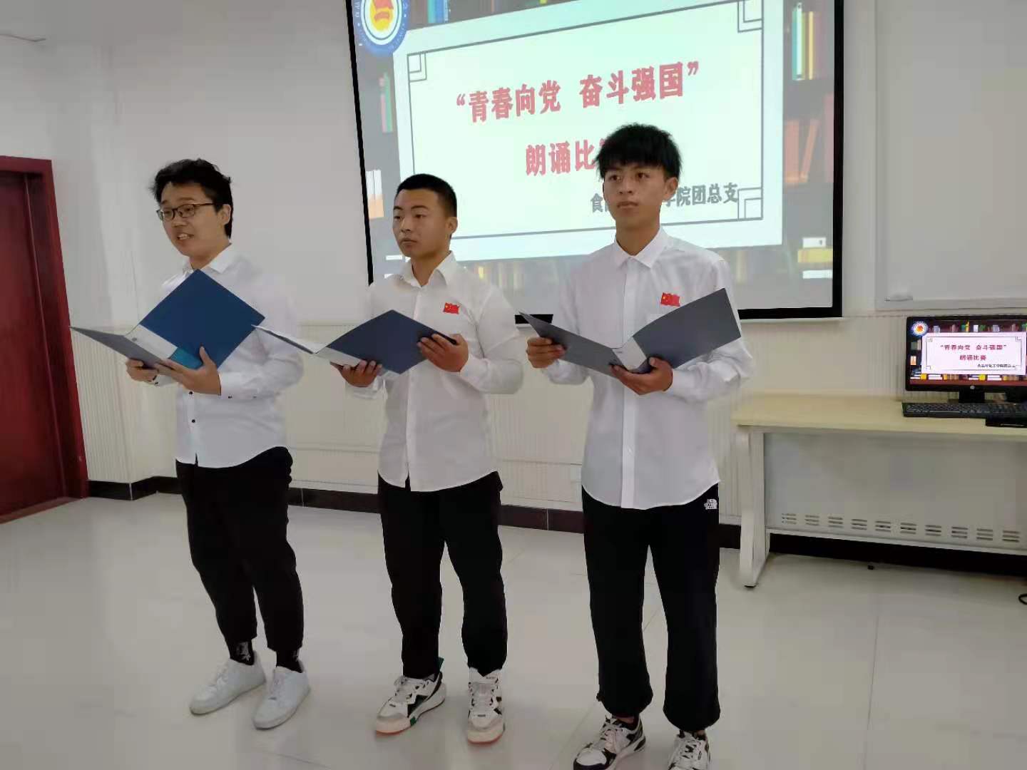 百年沧桑巨变,百年风雨征程,百年光荣辱与共,为庆祝中国共产党成立100周年,以第26个世界读书日到来为契机,食品与化工学院于2021年4月21日下午举行学生“青春向党,奋斗强国”朗读比赛。
