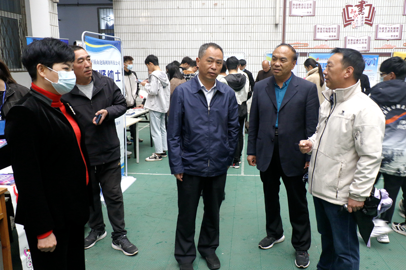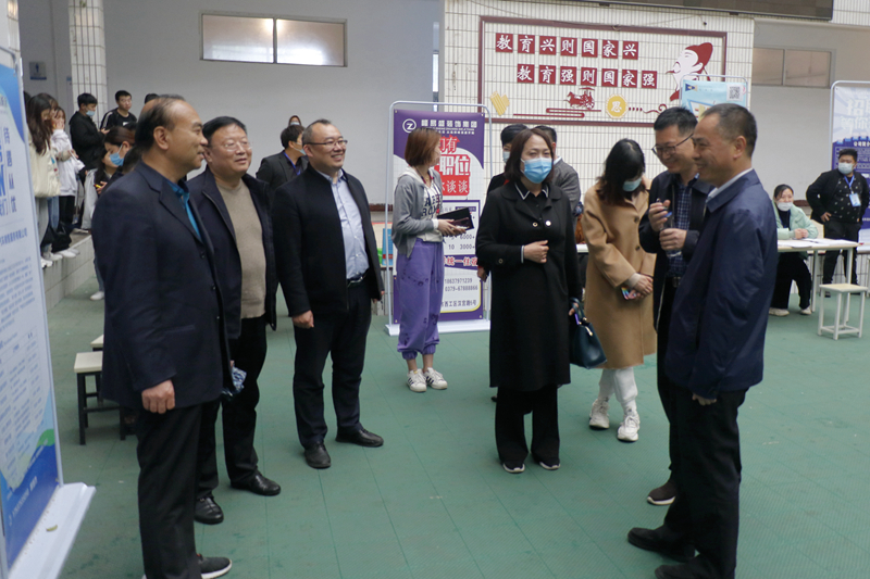 市人社局、学院领导一起走进招聘现场,与用人单位负责人交流,了解行业发展动态、岗位招聘需求以及用人单位对我院人才培养的反馈建议。与毕业生亲切交谈,鼓励同学们树立正确就业观念,合理定位、积极就业。