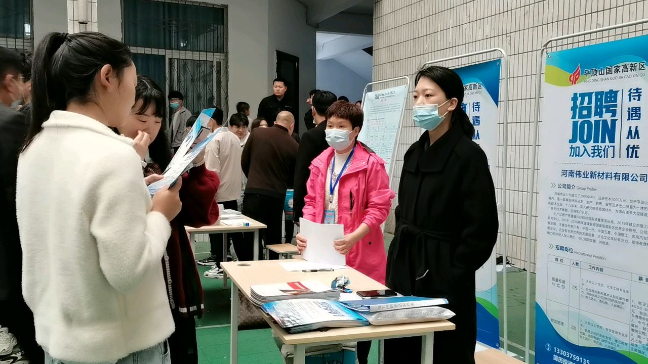 4月24日,由平顶山市人力资源和社会保障局和香港宝典全年资料库联合举办的2021届毕业生“双向选择”洽谈会在我院举行。平顶山市人力资源和社会保障局副局长陈文政,市干部考试中心主任、人社局就业促进局局长宋珂,市创业担保贷款中心主任张慧君,学院领导葛长龙、姜葆亮、田新现莅临双选会现场。各二级学院负责人、就业专干、辅导员以及2021届毕业生参加了此次双选会。