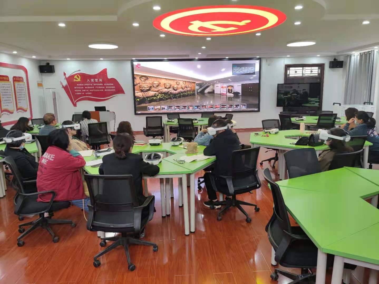 党员们通过VR技术,观看了“红军—过雪山”和“中国航天”。接着“参观”了中共上海一大会址,重温了那段惊心动魄的历史。