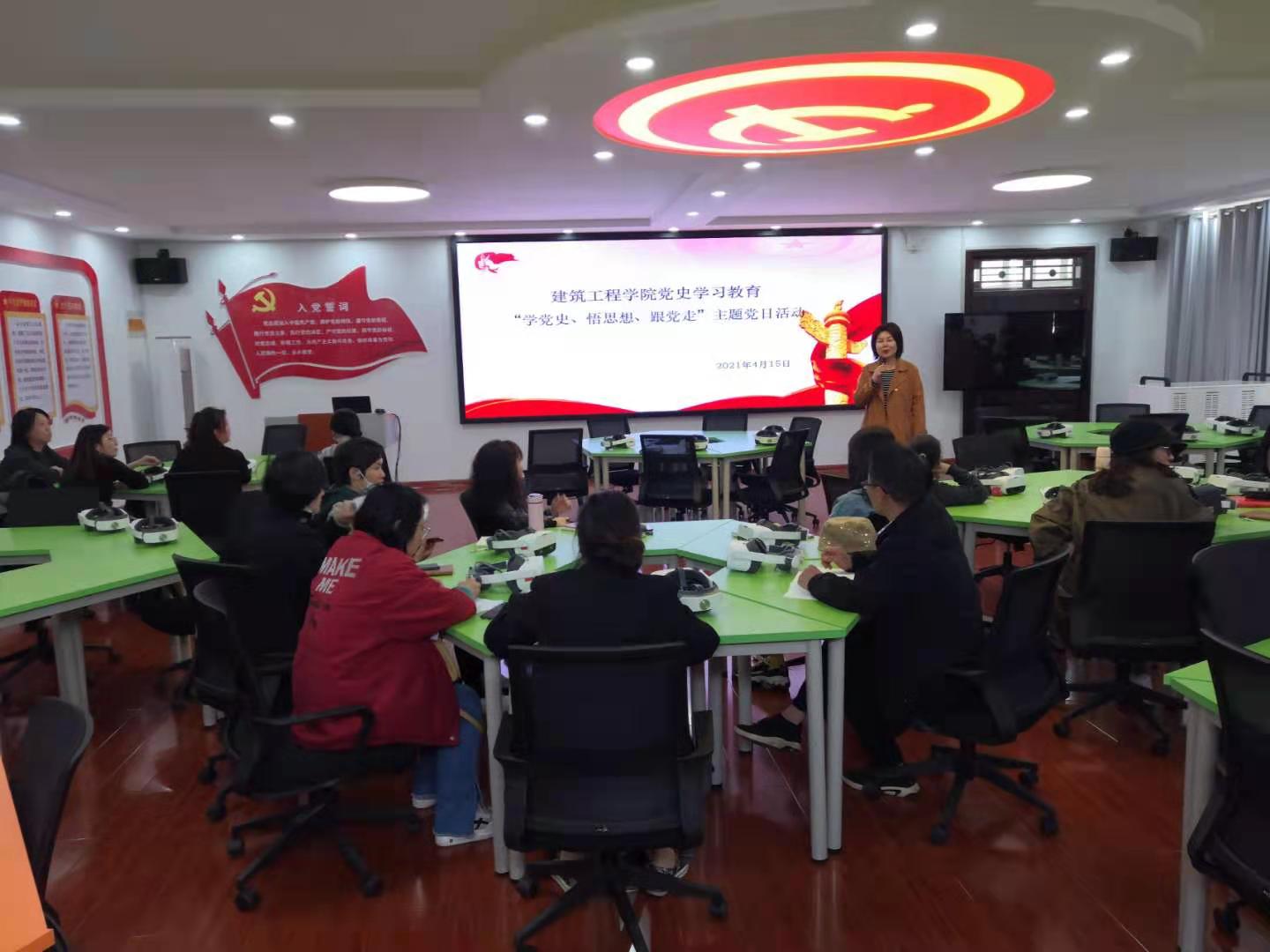 4月15日下午,建筑工程学院党总支组织党员在思政教育虚拟仿真教学中心开展“学党史,悟思想,跟党走”主题党日活动。