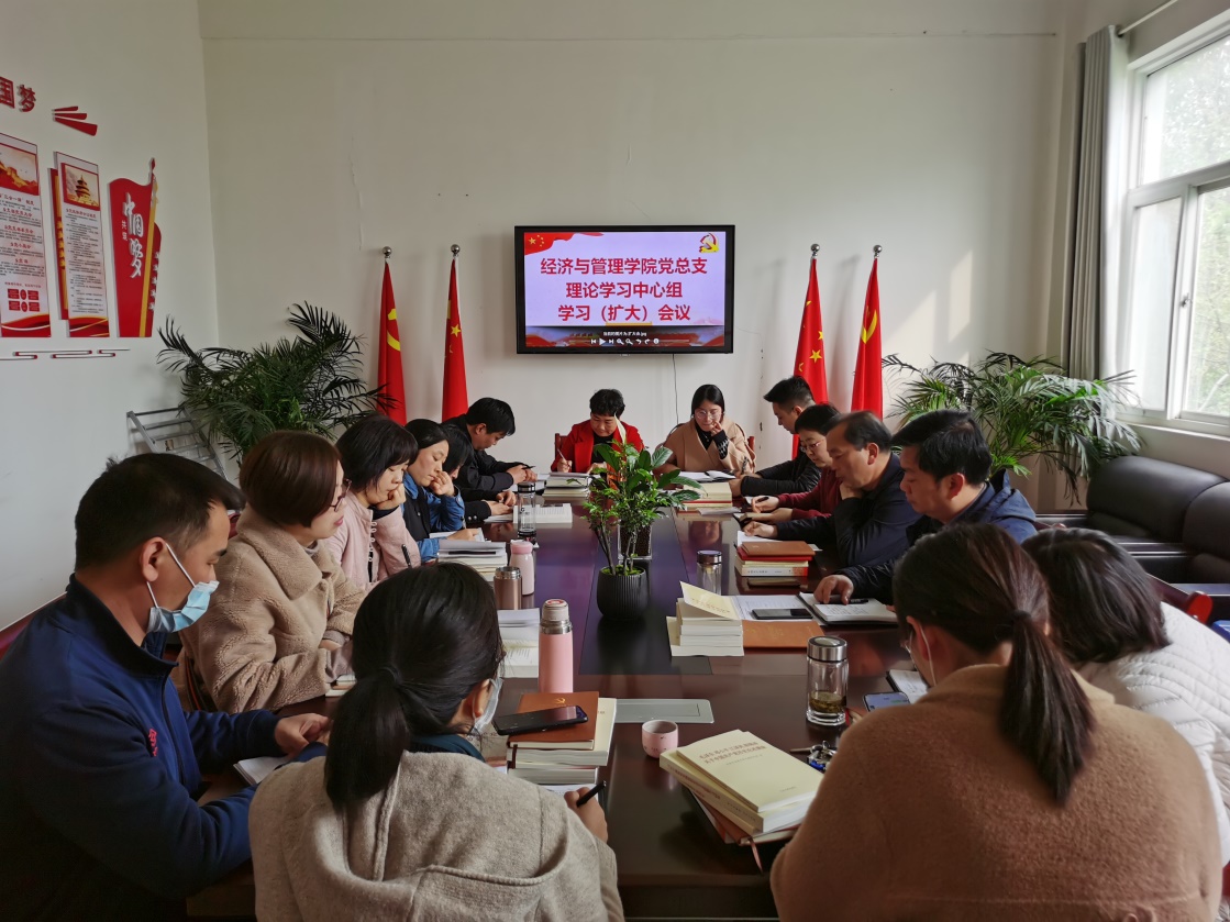 会上,传达了《关于成立经济与管理学院党总支理论学习中心组的通知》内容,全体成员集中学习了《中国共产党简史》—“全民族抗日战争的中流砥柱”、 《论中国共产党历史》—“中国革命历史是最好的营养剂”、《习近平总书记系列重要讲话读本》、《习近平新时代中国特色社会主义思想三十讲》等篇章内容。