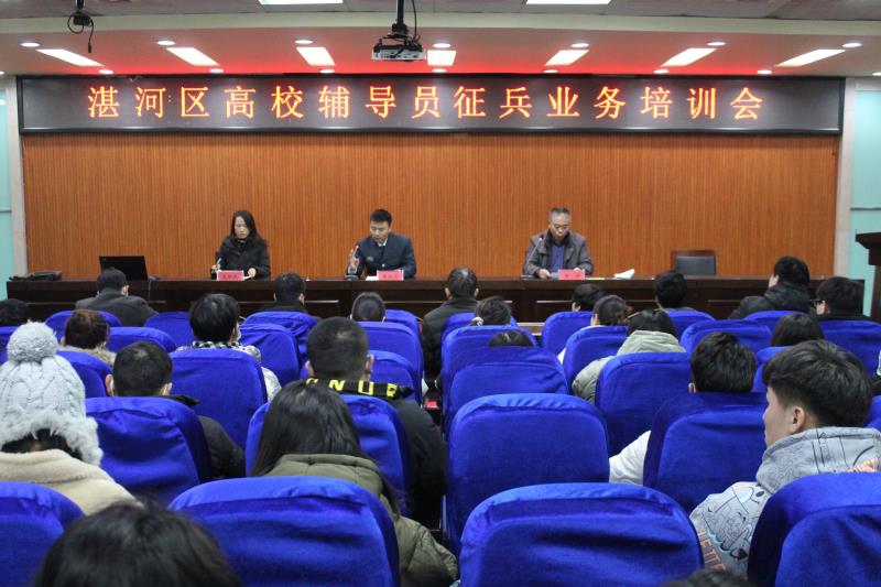 为全面提升高校辅导员队伍征兵业务素质,着力推动大学生征兵工作,12月29日下午,湛河区高校辅导员征兵业务培训会在我院致知楼第二学术报告厅举行,我院及平顶山工业职业技术学院共110名辅导员参加培训,本次业务培训由湛河区武装部军事科科长梁俊肖辅导授课。