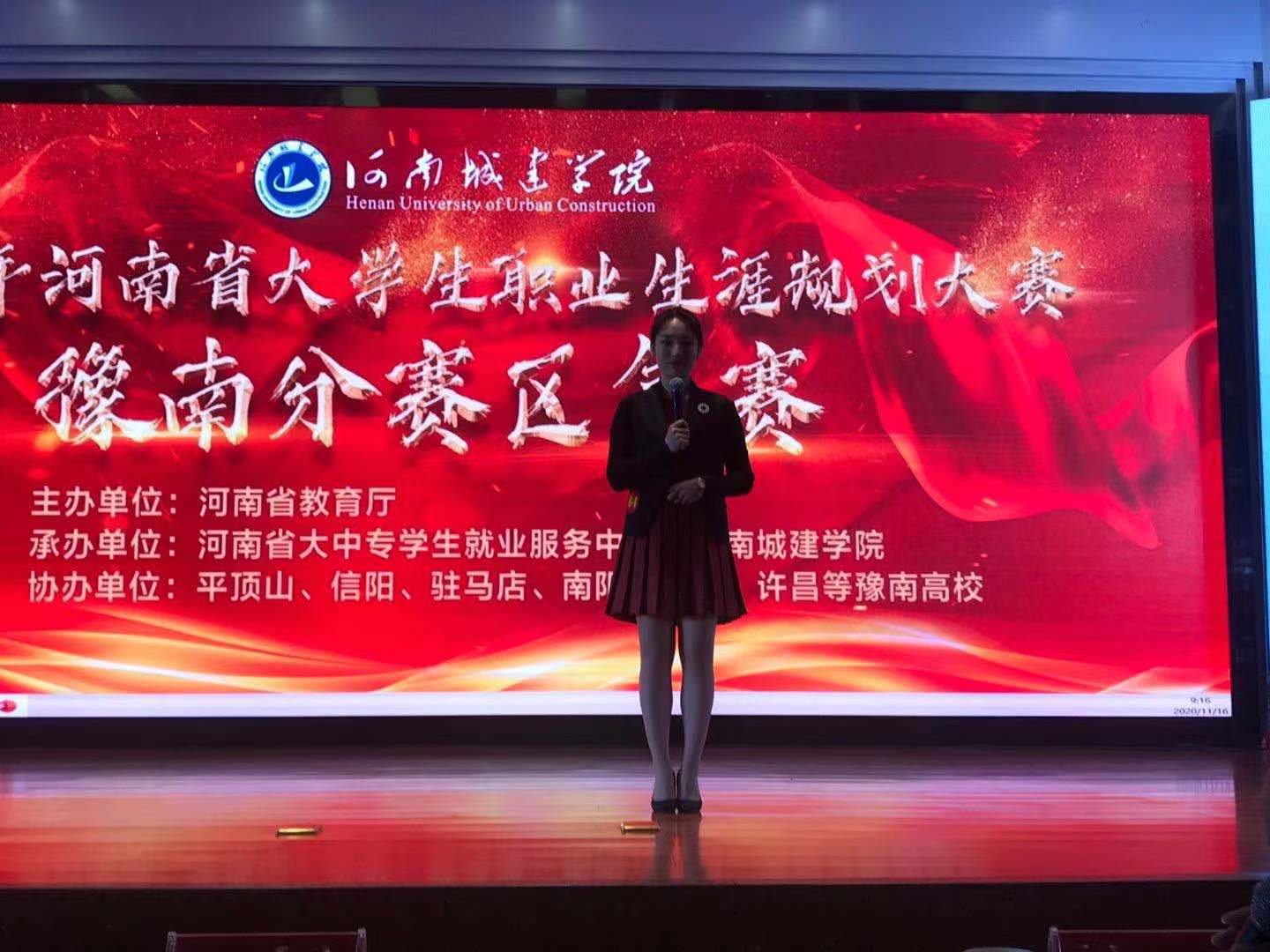11月15日至16日,2020年河南省大学生职业生涯规划大赛(豫南赛区)在河南城建学院举办,我院获得可喜成绩。此次比赛由河南省教育厅主办,河南省大中专学生就业服务中心、河南城建学院承办,共有来自省内豫南赛区的25所高校71名选手参加比赛,经过近两天激烈比拼,我院人文艺术学院的韩京霏同学脱颖而出,荣获豫南赛区一等奖(高职院校第一名),信息工程学院的郭若玥同学获得三等奖,经济管理学院的黄佳同学获得优秀奖。其中,韩京霏同学将代表豫南赛区参加全省总决赛。