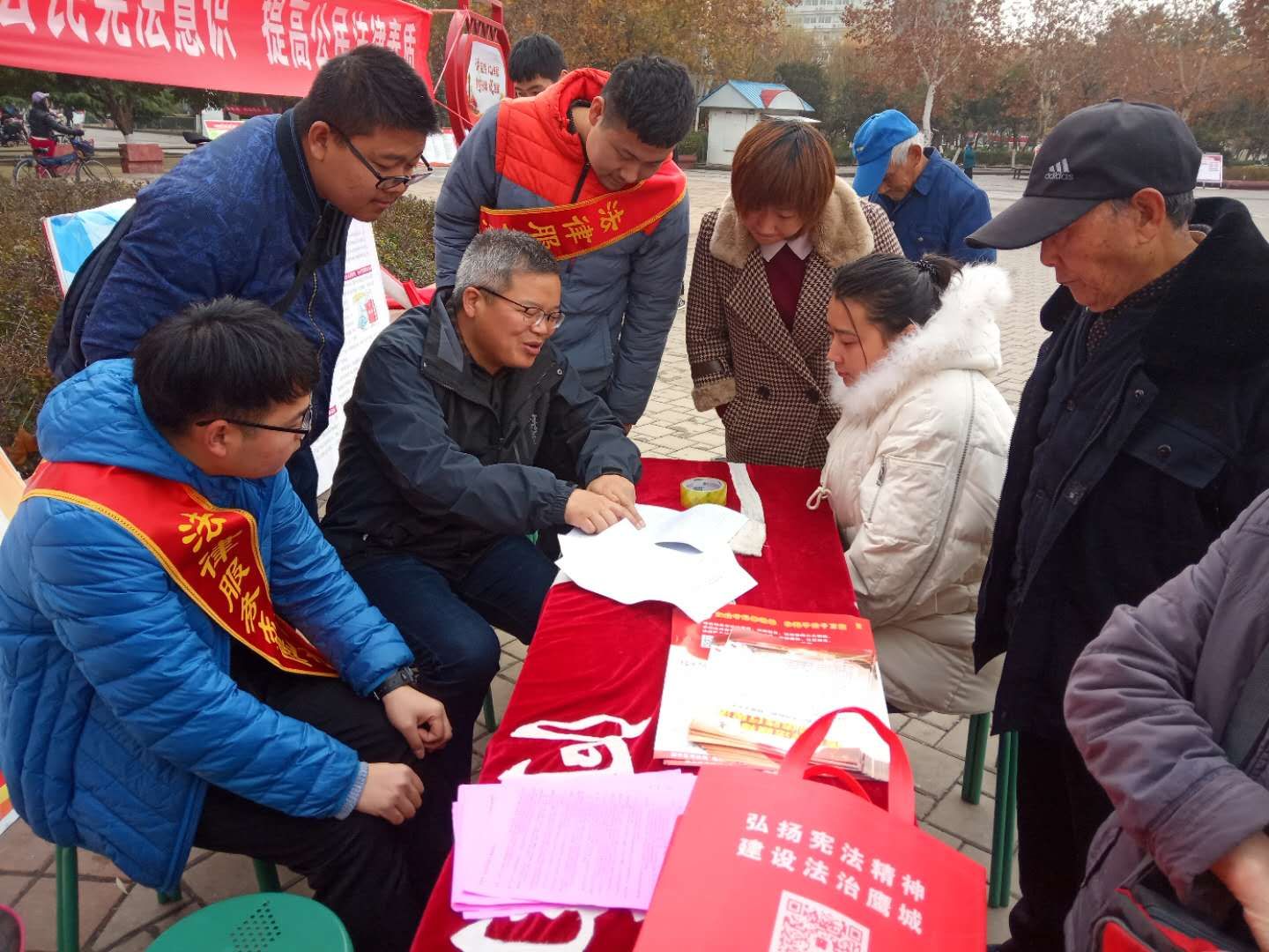 为了大力弘扬宪法精神,维护宪法权威,推动全社会尊崇宪法、学习宪法、遵守宪法、维护宪法,促进全面依法治国,12月4日上午,公共管理学院法律事务专业35余名师生在市鹰城广场开展了“国家宪法日”普法宣传活动。