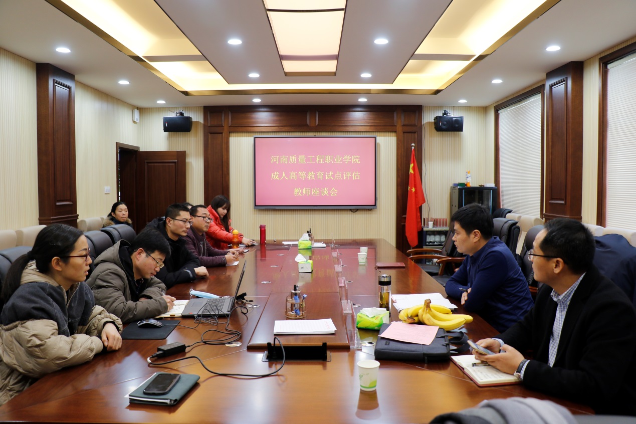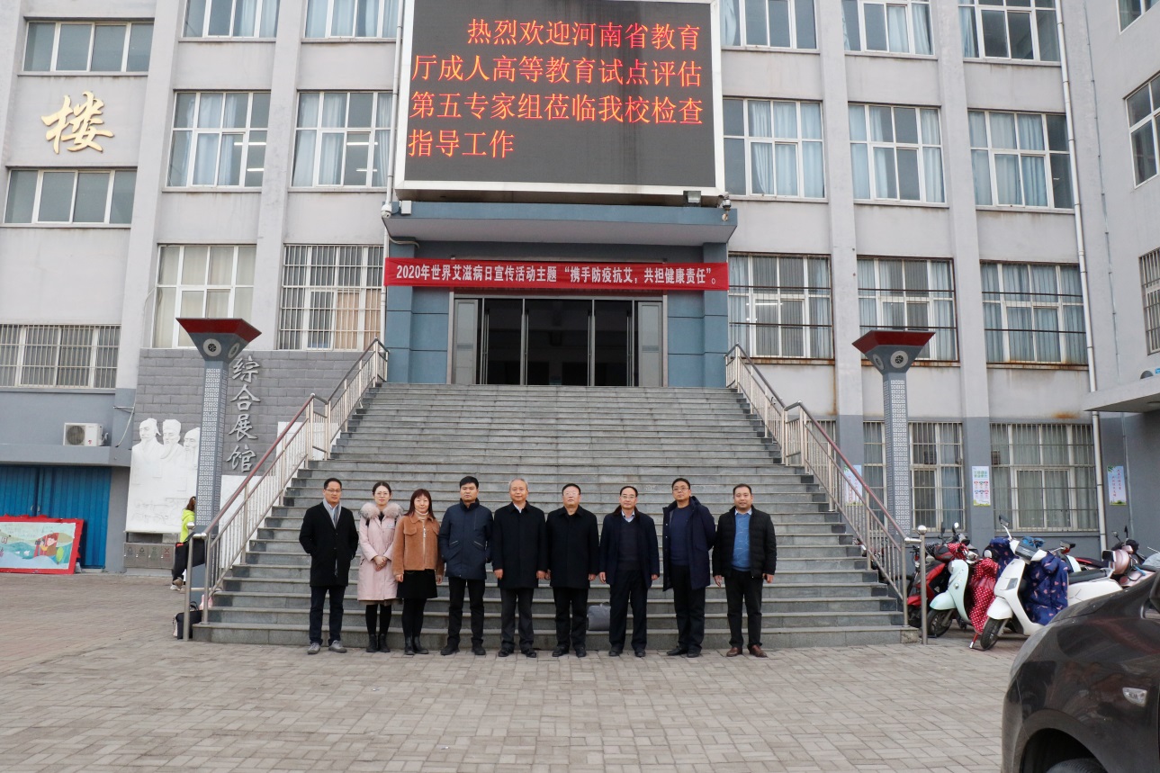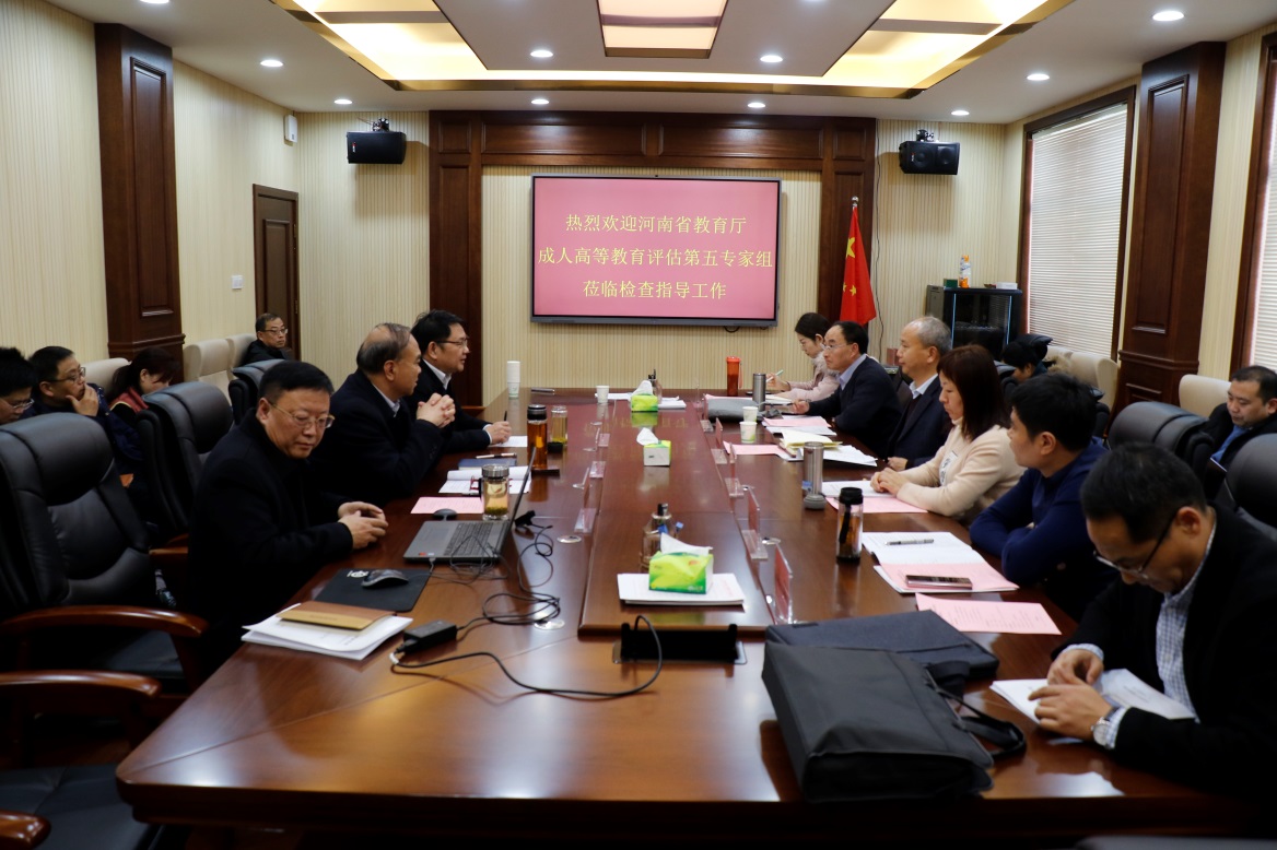 12月10日,以河南财经政法大学继续教育学院院长冯益广为组长的河南省成人高等教育试点评估第五专家组一行6人莅临我院,对我院成人高等教育工作进行试点评估。学院在办公楼第二会议室召开评估汇报会,副院长葛长龙、党委副书记、工会主席姜葆亮、副院长田新现出席汇报会,相关职能部门负责人、继续教育学院全体教职工参加汇报会,副院长葛长龙主持会议。