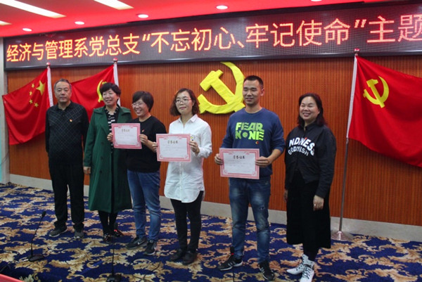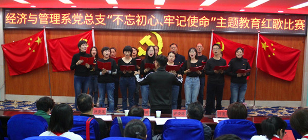 10月24日,经济与管理系党总支在致知楼第二学术报告厅举行“不忘初心、牢记使命”主题教育红歌比赛。院纪委副书记何桂英、院党委组织部部长李智勇、督导室主任廖丽萍、思政部主任徐松江和建工系党总支书记党晓寰应邀担任评委,经济与管理系全体党员、入党积极分子、新生代表共计100余人参加比赛。