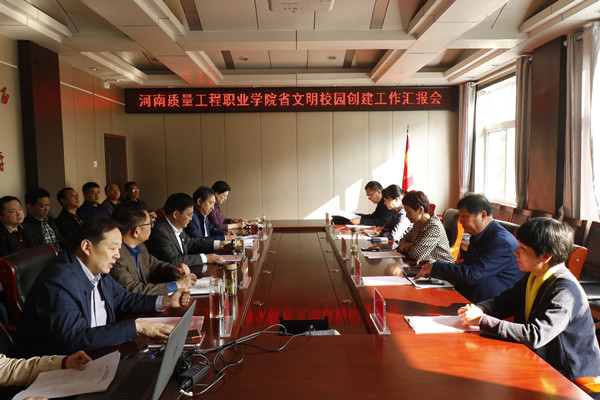 11月5日下午,以平顶山市文化广电旅游局纪检书记王秋惠为组长的省文明校园考评组一行5人来到我院,对我院的文明校园创建工作进行考察。学院在办公楼四楼会议室举行了专题汇报会。学院领导张清林、郑海金、姜葆亮、温亚丽、秦中文出席会议,相关单位负责人参加了汇报会。会议由院长郑海金主持。