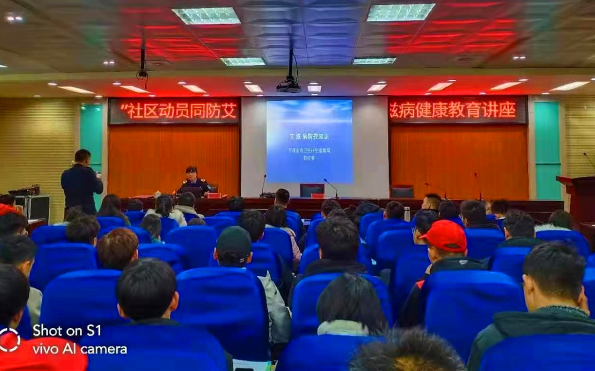 彭红英科长从全球第一例艾滋病人的发现及艾滋病在世界和中国的流行状况、艾滋病的流行特点、临床表现、传播途径、预防措施等几个方面进行了详细的讲解,使同学们对艾滋病有了更加清晰的认识,增强了同学们对艾滋病的预防抵御能力。