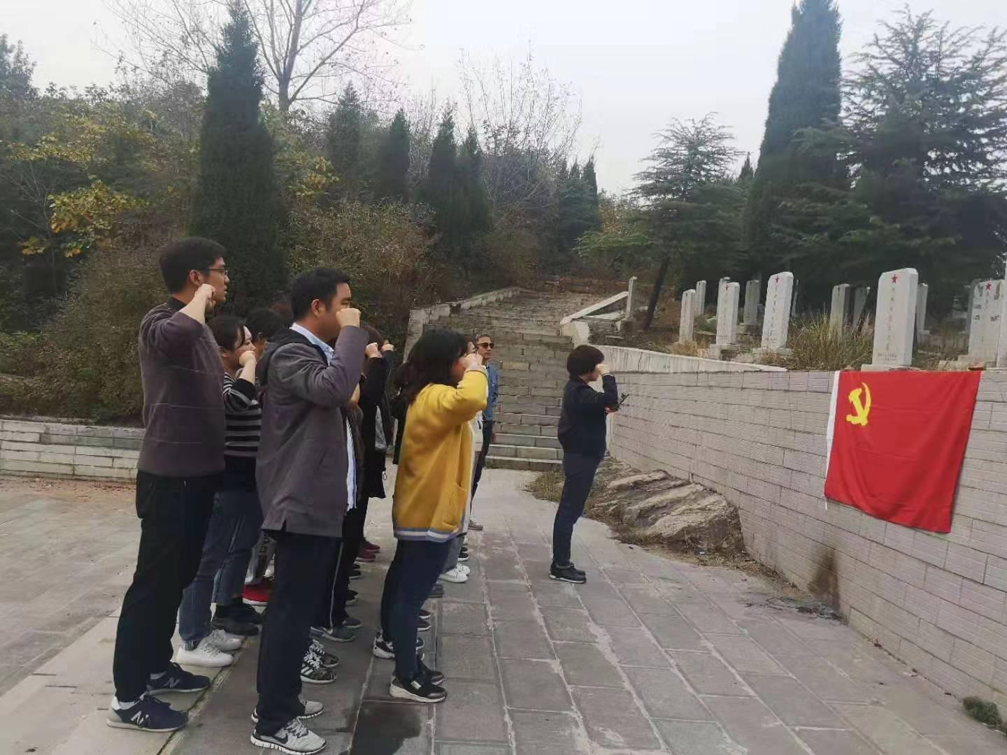 建筑工程系党总支积极响应党中央、省委、市委和学院党委的号召开展学习“不忘初心、牢记使命”主题教育活动,于2019年11月2日到河南省国防教育基地舞钢市虎头山新四军革命烈士陵园举行悼念抗日英烈主题党日活动。