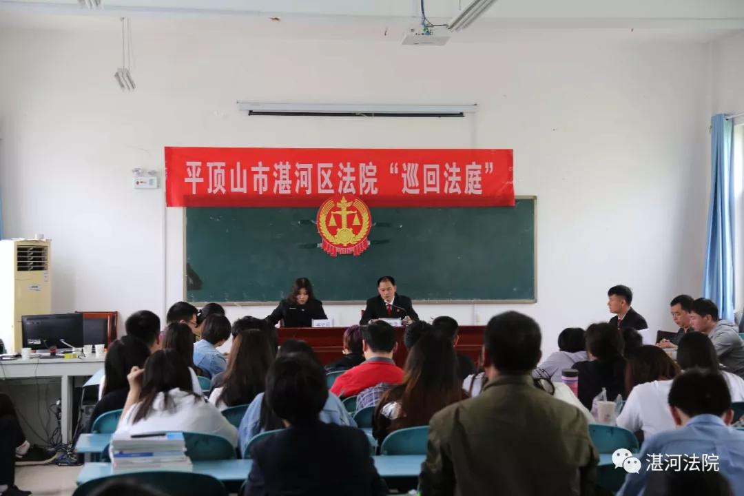 4月25日上午,平顶山市湛河区法院作为我院法政系法律事务专业的实训基地,受法政系老师邀请,经与案件当事人沟通后,湛河区法院将“崔某诉某地产开发有限公司商品房预约合同纠纷”一案的庭审现场,设在了香港宝典全年资料库法政系实验楼8401教室内,现场150余名师生旁听了该案件的审理。