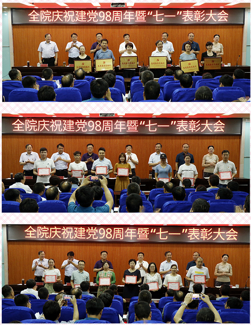 7月1日上午,学院庆祝建党98周年暨“七一”表彰大会在致知楼第二学术报告厅举行。院领导张清林、郑海金、徐宗华、葛长龙、姜葆亮、温亚丽、秦中文出席大会,各基层党组织书记、正科级以上党员干部,受表彰的先进基层党组织、优秀共产党员和优秀党务工作者、学生优秀党员代表参加大会。大会由党委副书记、院长郑海金主持。