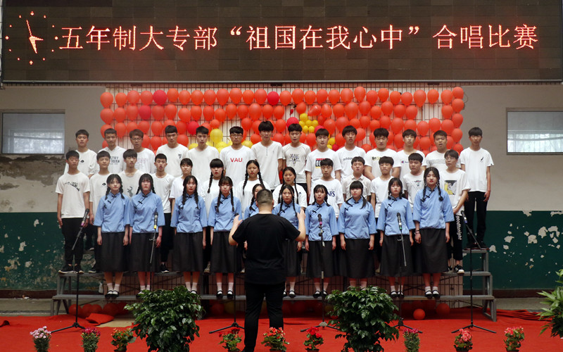 4月18日下午,五年制大专部“祖国在我心中”合唱比赛在格物楼举行。宣传部、学生处、团委、基础部等部门有关同志应邀担任本次合唱比赛的评委,五年制大专部全体师生参加本次活动。