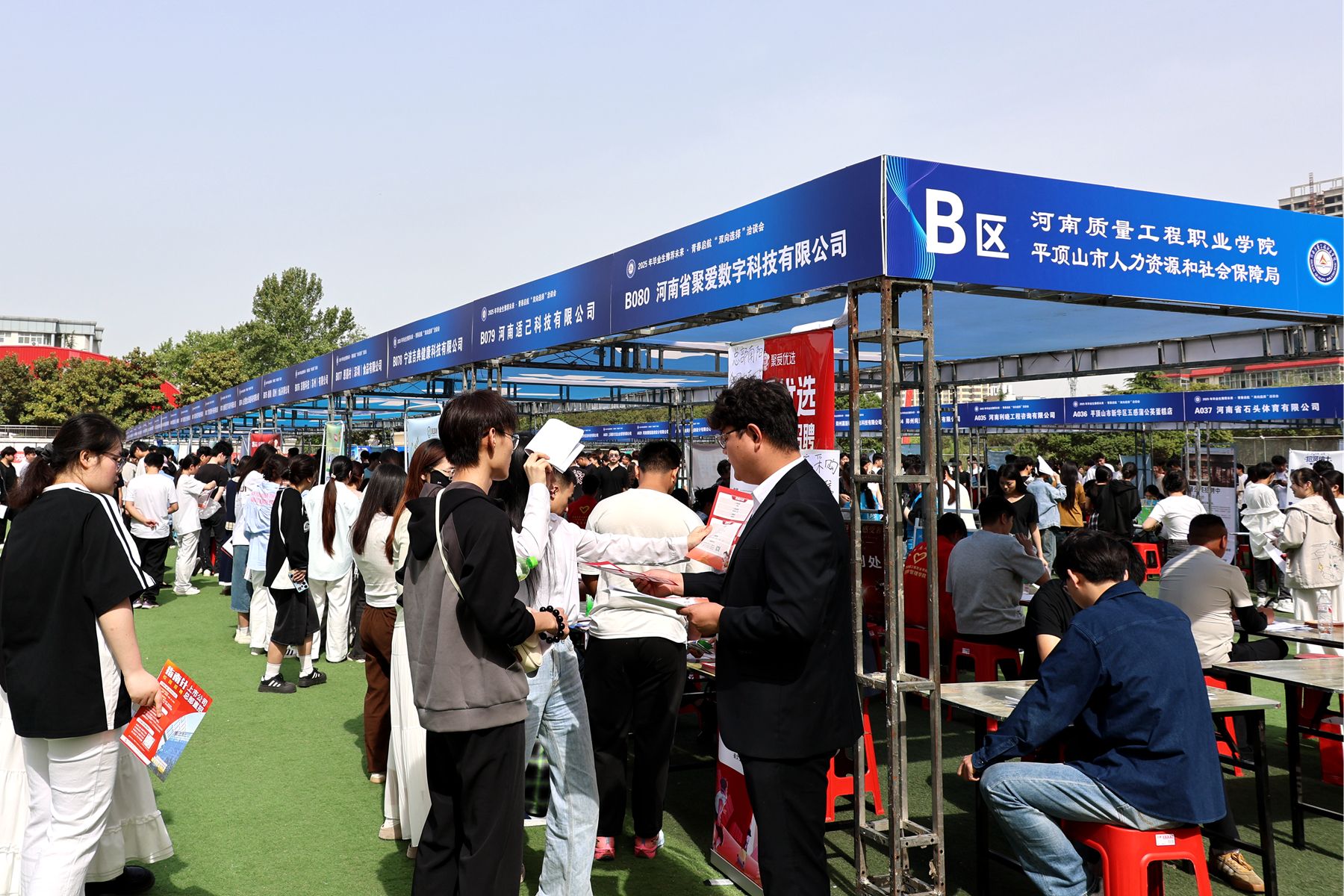 4月17日上午,我院联合平顶山市人力资源和社会保障局、舞钢市人力资源和社会保障局举办的2025年毕业生“豫荐未来 青春启航”线下双选会在校本部拉开帷幕。