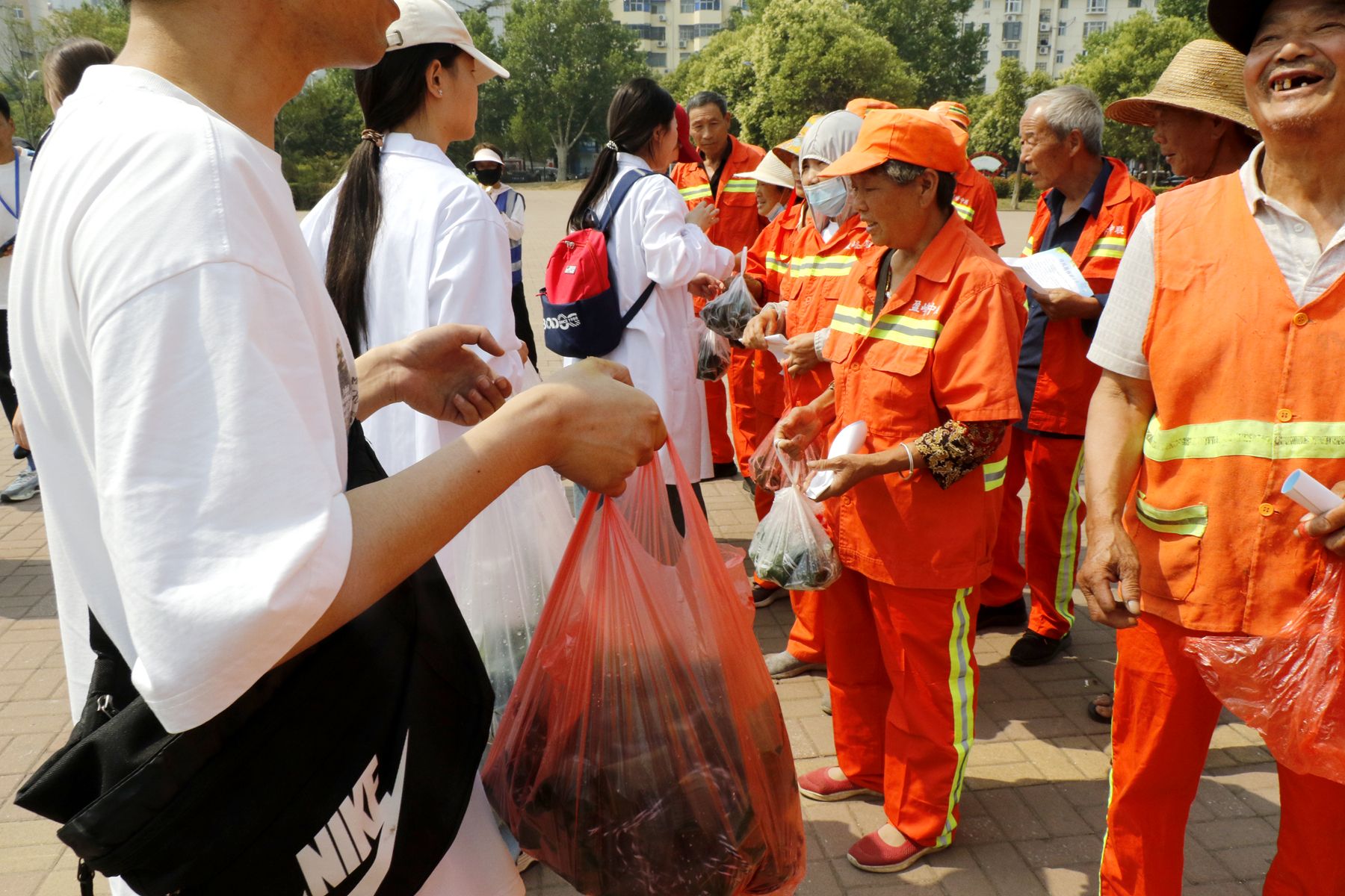 传递正能量,公益慰问。比赛结束后,学生们将制作好的爱心粽子送到环卫工人手中,并叮嘱他们注意身体健康。此次活动不仅送出了粽子,更倡导了“奉献、友爱、互助、进步”的志愿服务精神。