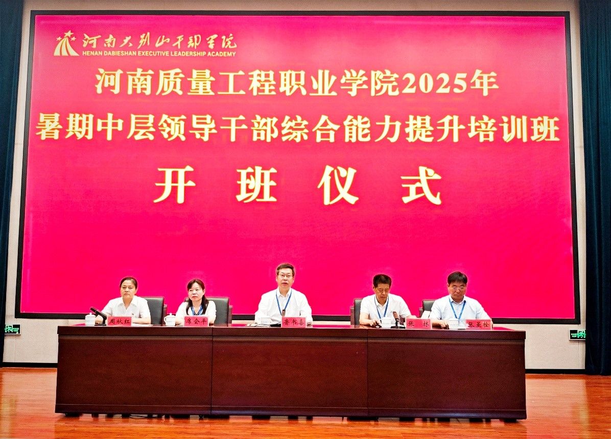 6月30日上午,我校2025年暑期中层领导干部综合能力提升培训班开班仪式在大别山干部学院举行。大别山干部学院党委委员、工会主席、机关党委书记周秋红,我校校长鲁书喜,纪委书记张林,副校长席会平、张虽栓出席开班仪式。开班仪式由张林主持。