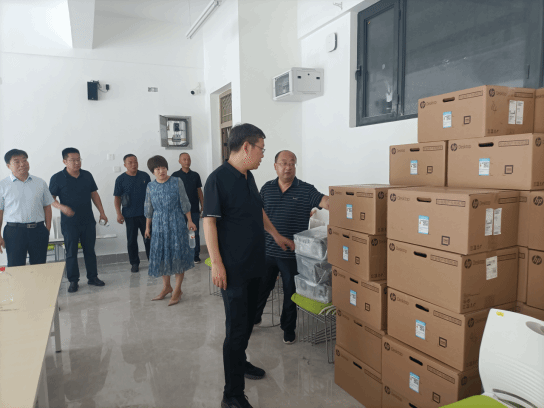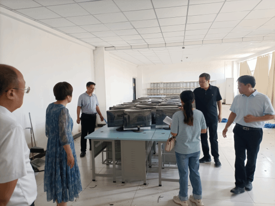 在校本部,鲁书喜一行首先来到欧八、欧九宿舍楼改造现场,查看房间结构、管线设置情况,详细询问了工程进度和安全保障措施。鲁书喜强调,宿舍是学生在校的“家”,要坚持“安全、环保、舒适”标准,严把材料关、工艺关,确保新生入住舒心、家长放心。在嘉量楼,鲁书喜一行仔细查看了计算机技术学院和机电工程学院的搬迁情况。在机房,鲁书喜特别关注了电脑设备的搬迁与保护工作,看到每一台电脑都用塑料薄膜精心包裹,以防止灰尘侵入,他对这种细致入微的保护措施给予了肯定。