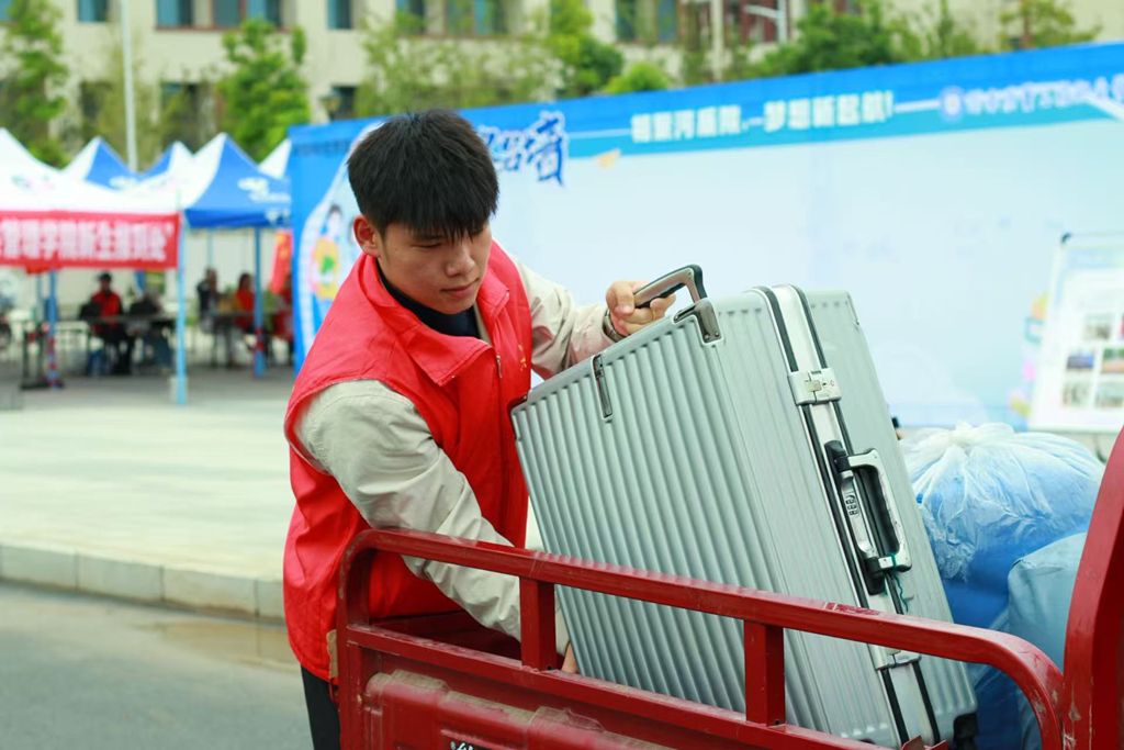 志愿者们忙碌穿梭在校园中,为新生指引道路、搬运行李,以灿烂的笑脸、热情的问候和周到的服务,给新生和家长留下了美好的印象。