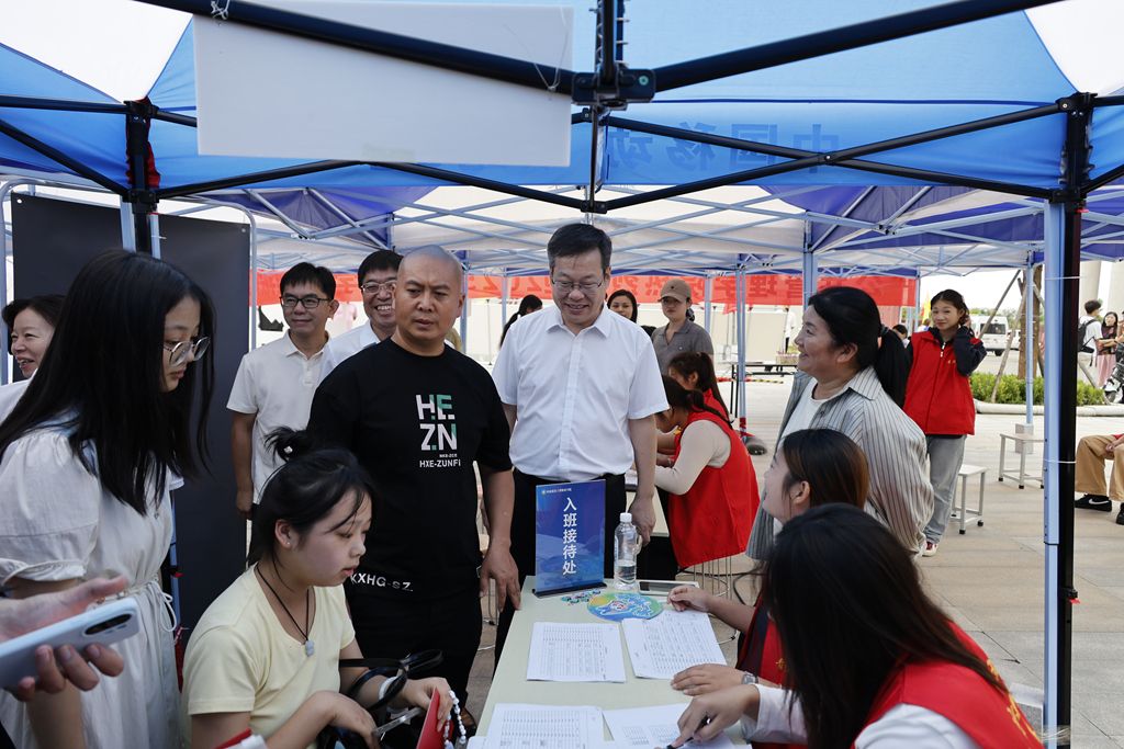 迎新首日,学校领导鲁书喜、金铮、席会平、张虽栓前往迎新现场检查迎新工作、关心慰问参与迎新的师生和工作人员,对迎新工作的有序开展给予充分肯定,对大家的辛勤付出表示感谢。校长鲁书喜认真听取各学院(部)迎新工作汇报,详细了解报到进展和特色活动,并强调迎新工作是新生到校的第一印象,各学院(部)要在保障流程高效便捷的基础上,进一步突出人文关怀,为新生和家长提供全面、热情、周到的帮助,切实让新生尽快适应环境、融入集体。