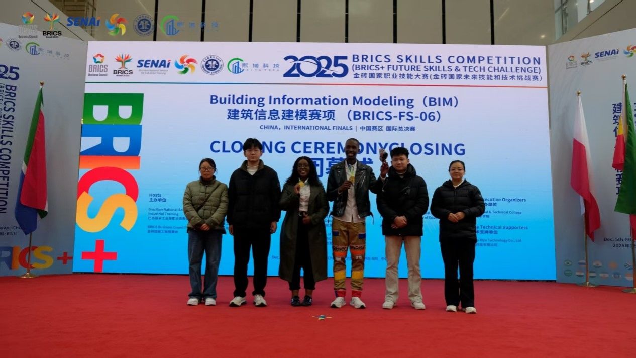 近日,2025 金砖国家职业技能大赛(金砖国家未来技能和技术挑战赛)建筑信息建模赛项国际总决赛在宜宾职业技术学院落幕。我校建筑工程学院高涵冰、王本富同学组成的代表队,在国内 17 个省市 42 支代表队及 5 个国家 11 支国际队伍(共 53 支队伍)的角逐中脱颖而出,斩获二等奖,创下我校在该项国际赛事的历史最佳成绩。