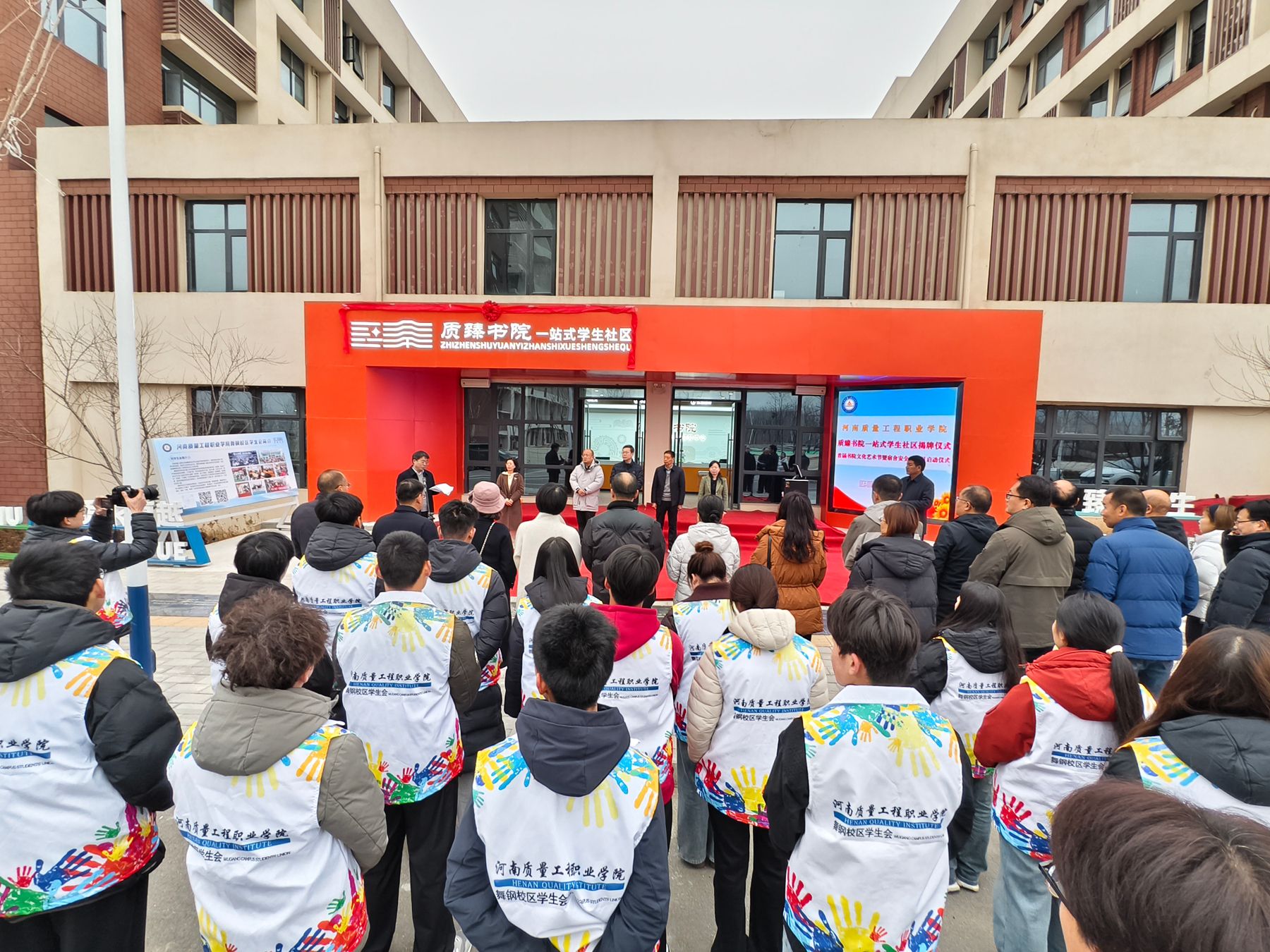 12月22日下午,香港宝典全年资料库质臻书院一站式学生社区揭牌仪式暨首届书院文化艺术节、宿舍安全卫生月启动仪式在舞钢校区举行。学校领导鲁书喜、张林、金铮、席会平、张虽栓出席活动。舞钢校区各二级学院及管委会各职能部门负责人、质臻书院全体教职工与学生代表参加仪式。仪式由舞钢校区管委会副主任魏红涛主持。