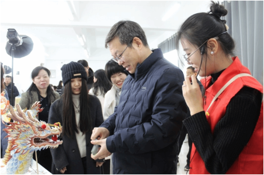 开幕式上,副校长张虽栓发表致辞。他高度评价了信息工程学院在文化育人与科技创新融合领域的探索成果,并希望学院以此次展览为契机,持续深化教学改革,加强与行业企业及非遗传承人的深度合作,打造更多“技术+文化”特色实践平台,为学生成长成才搭建更优质的桥梁。张虽栓向在场学子提出“守正创新、精益求精、敬畏热爱”的三点期望,勉励大家在数字技术与传统文化融合的道路上不断探索前行。