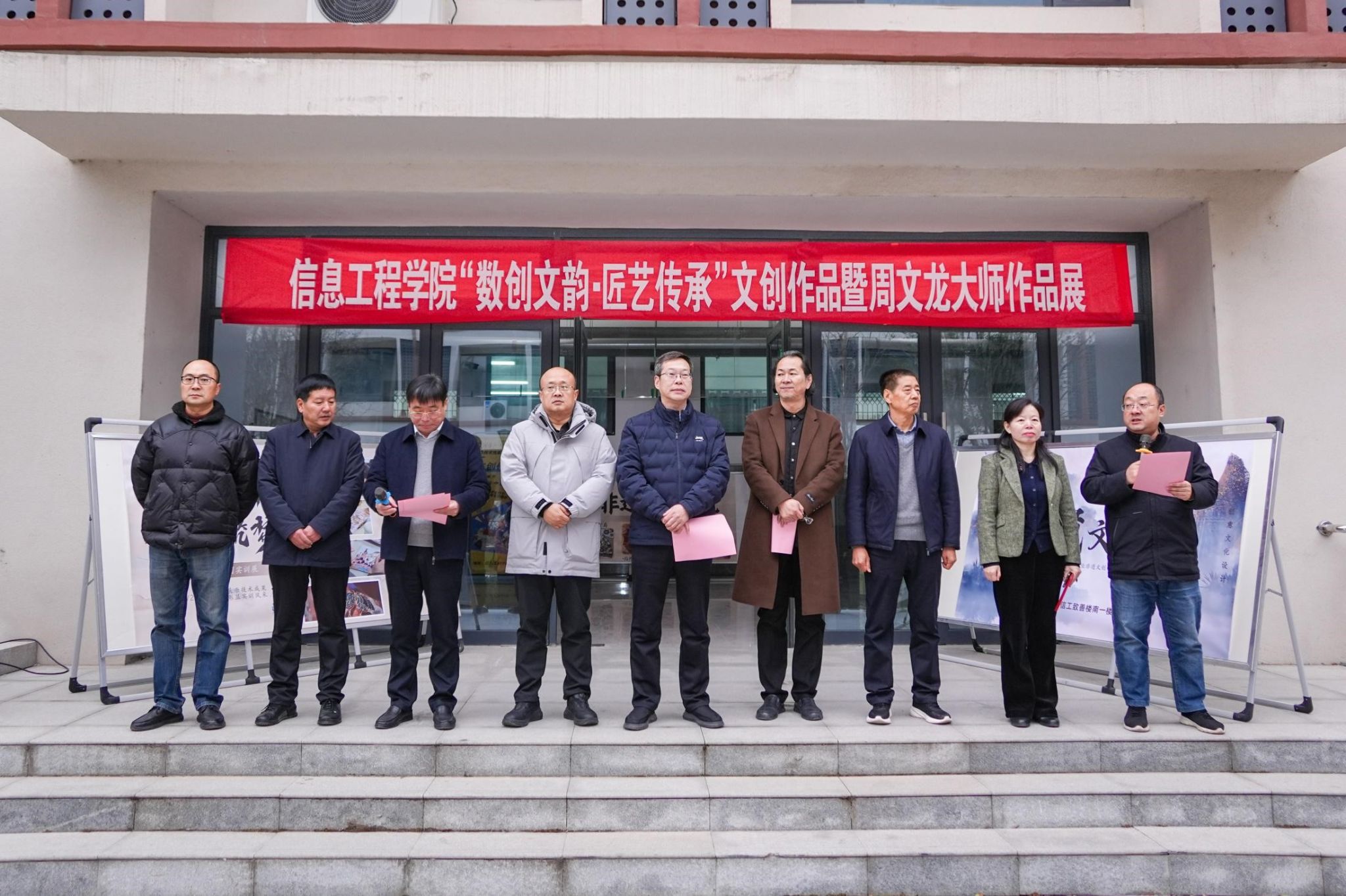 12月22日,由信息工程学院主办的“数创文韵·匠艺传承”文创作品暨周文龙大师作品展在舞钢校区致善楼开幕。学校领导鲁书喜、张林、金铮、席会平、张虽栓,高级工艺美术师、河南省工艺美术大师周文龙出席开幕式。舞钢校区管委会相关负责人、信息工程学院全体教职工及学生代表共同参加了本次活动。开幕式由信息工程学院院长陆晓强主持。