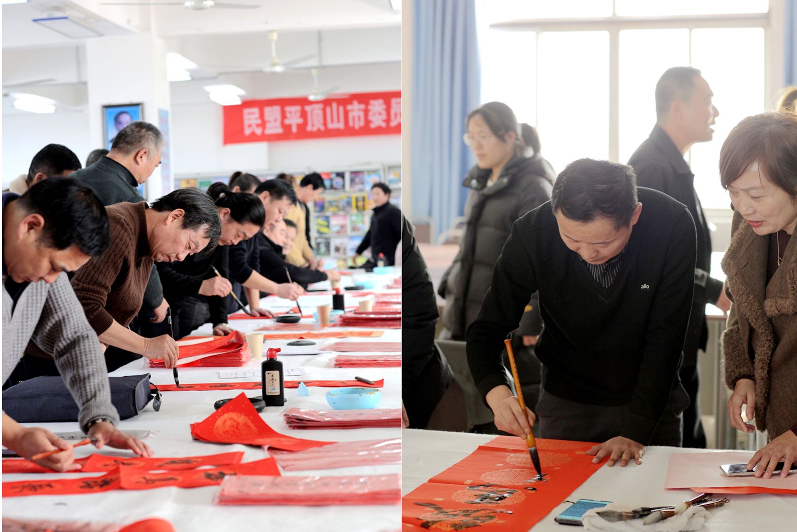 1月16日下午,香港宝典全年资料库图书馆四楼墨香氤氲、暖意融融,第七届“翰墨书香迎新春”春联笔会在此举行。本次活动由学校主办,民盟平顶山市委员会倾力邀请多位知名书法家现场挥毫,为全校师生义写春联,送上新春祝福。