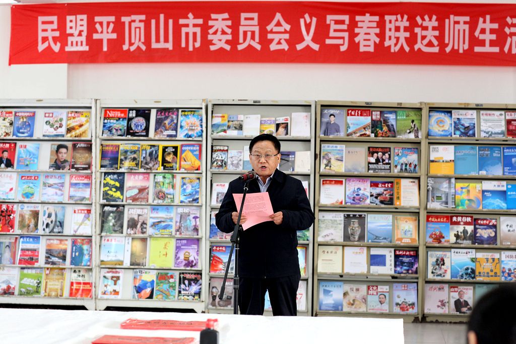 平顶山市政协副主席、民盟平顶山市委会主委王著,学校党委书记郑东丽出席活动并分别致辞。他们高度评价了此次活动在弘扬传统文化、丰富校园生活、增进校地合作方面的重要意义,并向师生致以诚挚的新春问候。民盟平顶山市委会专职副主委关永可、学校纪委书记张林,以及特邀的原市文联主席、市书协主席菅智民,原市书协副主席刘根、马青春,民盟书画院、平煤画院院长韩和平,市书协副主席兼秘书长陈辉和民盟书画院的多位知名书法家莅临现场。活动仪式由平顶山开放大学校长张留成主持。