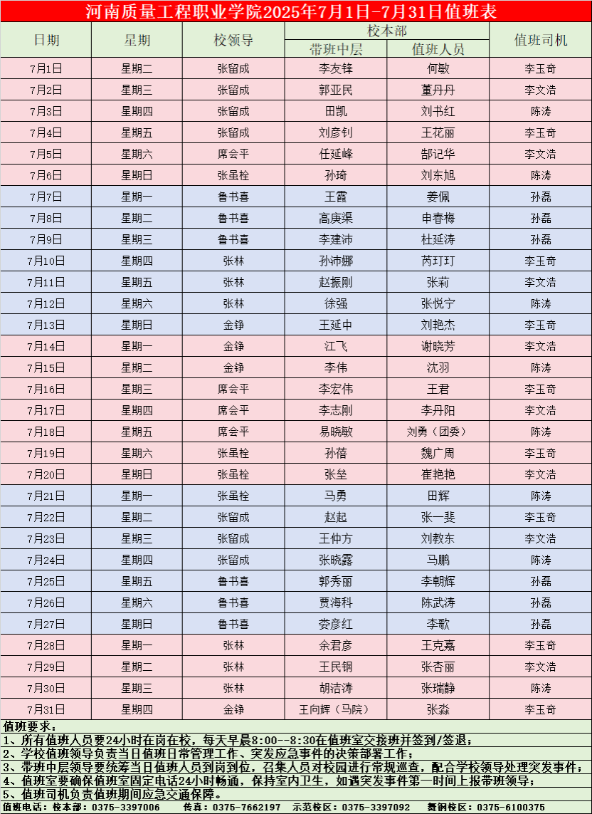 香港宝典全年资料库2025年7月1日-7月31日值班表