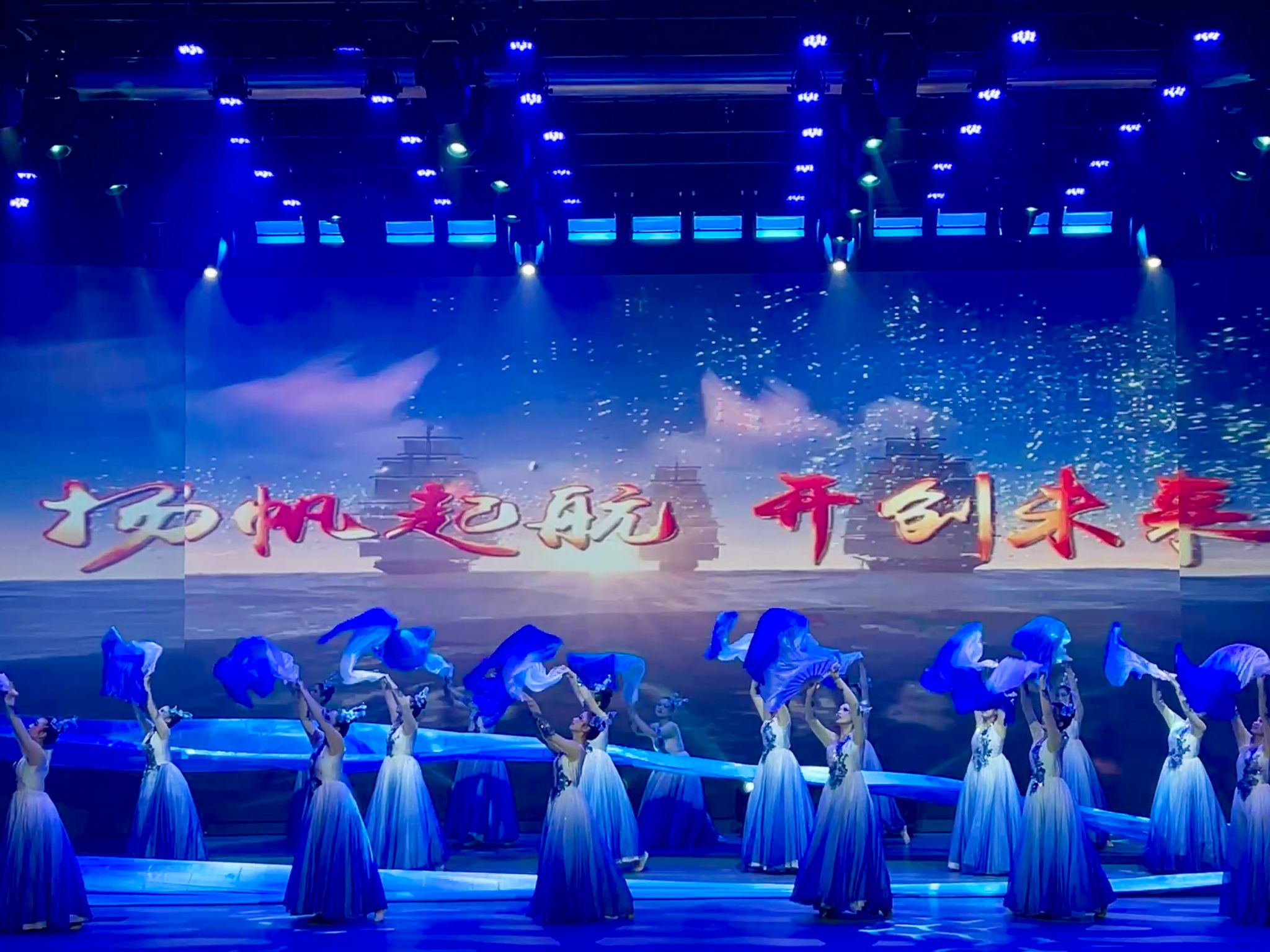 《逐梦》作为晚会的开场舞,同学们身着色彩艳丽的服装,身姿轻盈、步伐灵动,用丰富的肢体语言传递着对远道而来嘉宾的诚挚欢迎。同学们的每一个动作都洋溢着青春和活力,诠释了“逐梦”的主题,与中国公路自行车联赛选手们追逐梦想、挑战自我的体育精神完美契合,瞬间点燃现场气氛。当晚会步入尾声,《未来可期》温情上演。同学们用饱含深情的表演,表达了中国公路自行车联赛高水平建设和舞钢“体育强市”建设的光明前景,也传递出对建设体育强国的美好憧憬。
