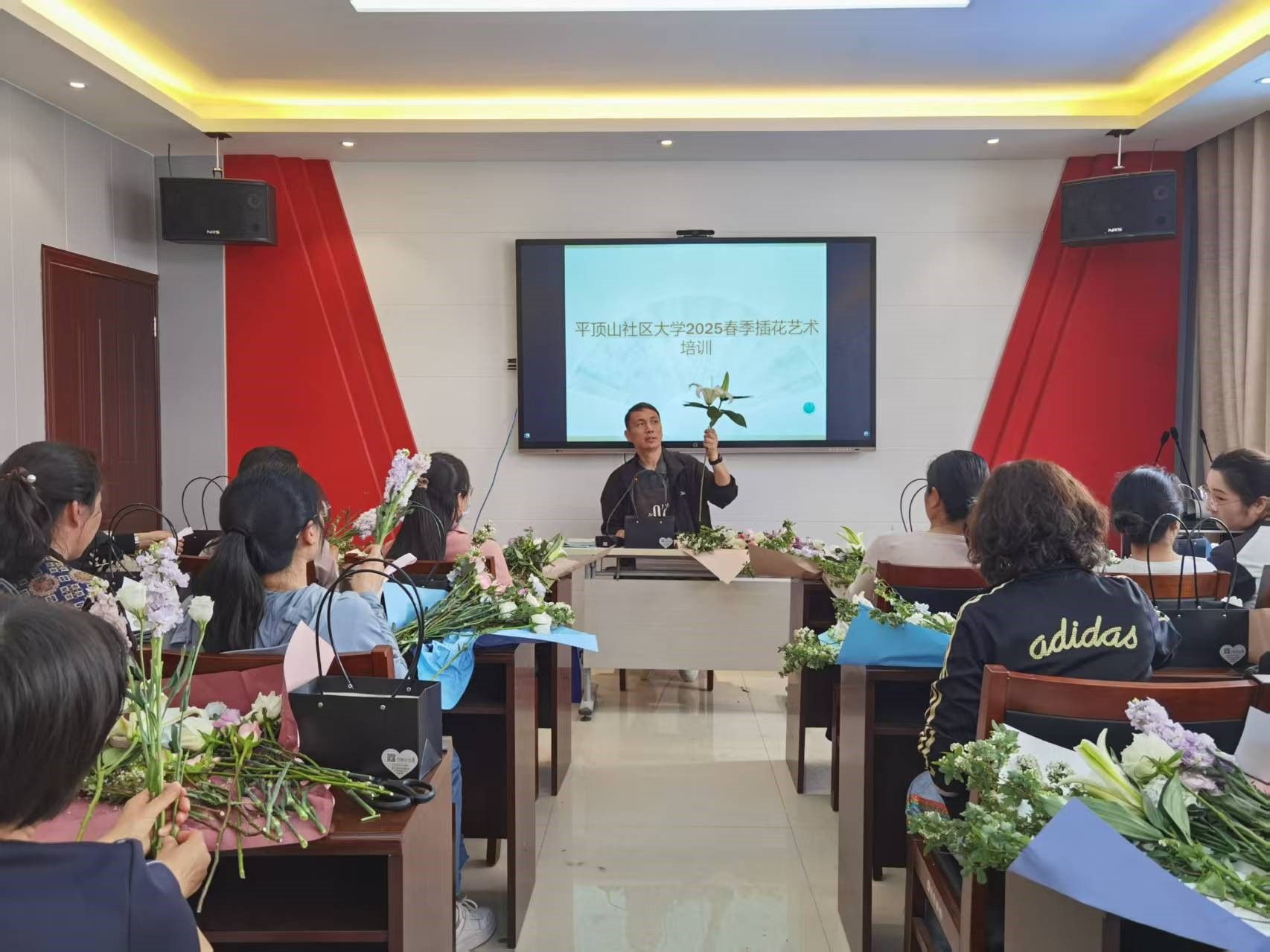 人间四月芳菲盛,花艺飘香润心田。4 月 24 日至 25 日,平顶山社区大学精心筹备的插花艺术培训活动在社区大学活动室举行。活动特邀我市资深花艺师李丰武先生授课,吸引了众多社区居民和花艺爱好者踊跃参与,大家共同在花香与创意中感受插花艺术的独特魅力。