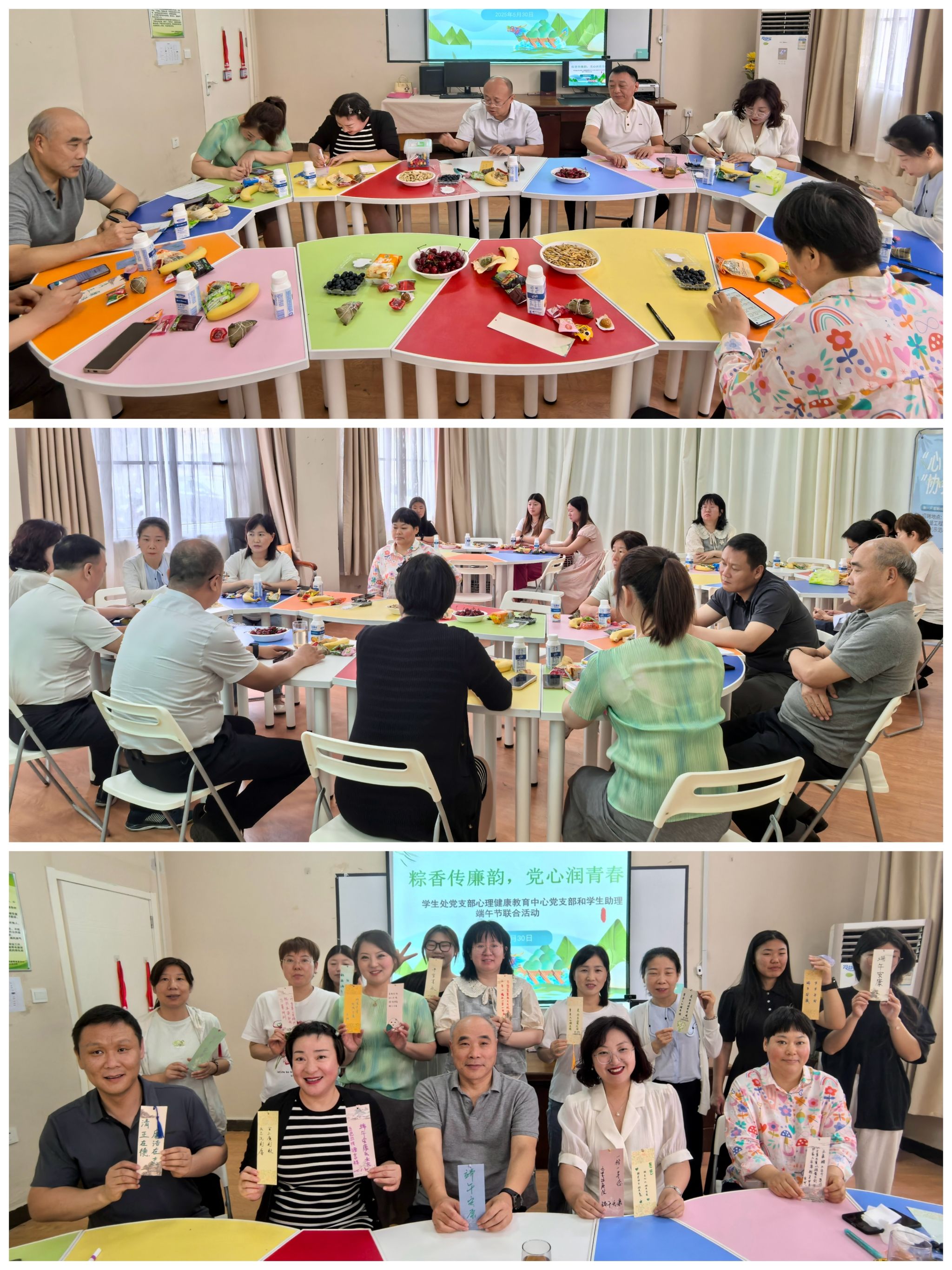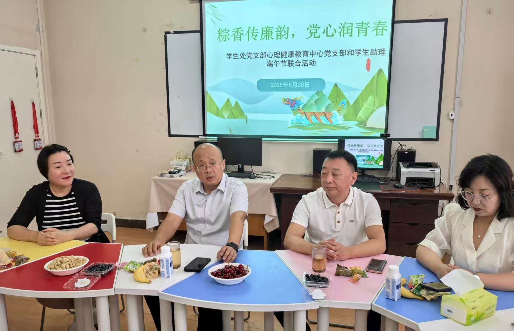 5月30日上午,学生处党支部联合心理健康教育中心党支部、学生助理,于心理健康教育中心活动室开展“粽香传廉韵,党心润青春”端午节主题活动。党委委员、副院长金铮莅临指导,与党员师生共话传统文化与廉洁教育的深度融合。