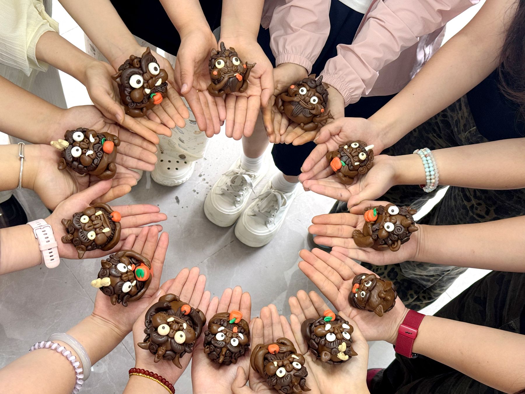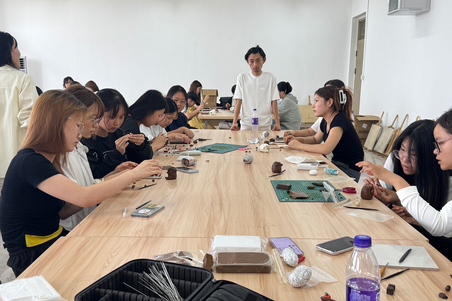 讲座结束后,精彩的彩塑体验环节将活动推向高潮。在王斌老师的悉心指导下,学生们积极参与,化身“小小非遗传承人”,从选泥、制模到塑形,每一个步骤都全神贯注、认真实践,充分展现出对非遗文化的热爱与传承的坚定决心。王斌老师对学生们的作品给予了高度评价,并鼓励大家:“非遗传承不仅需要技艺的延续,更需要创新思维的注入。希望同学们能够将今天所学融入创新创业实践,让非遗文化在新时代焕发出新的活力。”