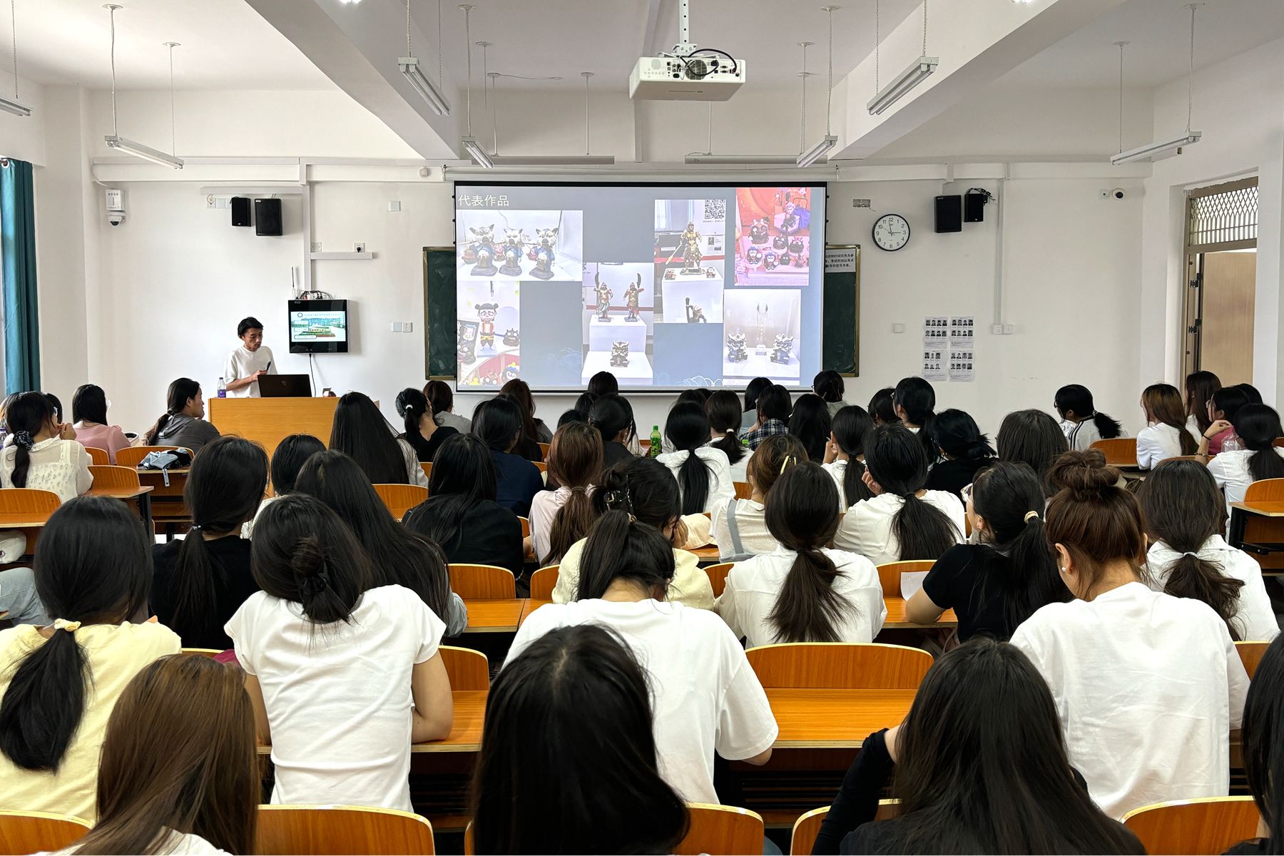 讲座现场,王斌老师以深厚的专业素养和丰富的实践经验,围绕彩塑的基本概念、分类、历史演变、制作步骤以及传承与保护等内容,进行了深入浅出的讲解。他通过展示大量精美的彩塑作品图片和珍贵实物,带领学生们穿越千年历史,领略彩塑艺术的独特魅力。从传统彩塑的文化底蕴,到现代创新设计理念的融入,王斌老师结合自身创业实践,深入剖析如何将传统非遗技艺与现代设计、市场需求相结合,为学生们打开了非遗传承与创新创业融合发展的新思路,生动诠释了非遗在当代社会的经济价值与文化生命力。