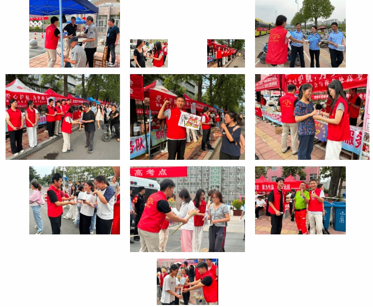 除基础服务外,志愿者们还积极协助交警维护考场周边秩序,引导送考车辆有序停放,确保考生能够快速安全地进入考场。面对高温天气,他们为执勤交警、安保人员送去饮用水,感谢他们为高考安全保驾护航。一瓶瓶水传递的不仅是清凉,更是对默默奉献者的敬意与关怀,成为考场外一道温暖的风景线。