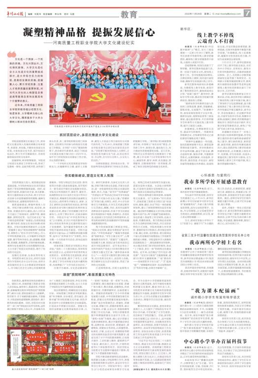 2022年11月29日,《平顶山日报》第A07版对我院近年来校园文化建设进行了专题报道。全文如下: