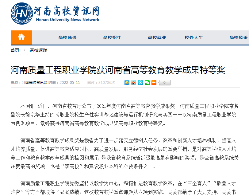 近日,《平顶山日报》、河南高校资讯网等诸多媒体,对我院荣获河南省高等教育教学成果奖特等奖情况进行了专题报道。