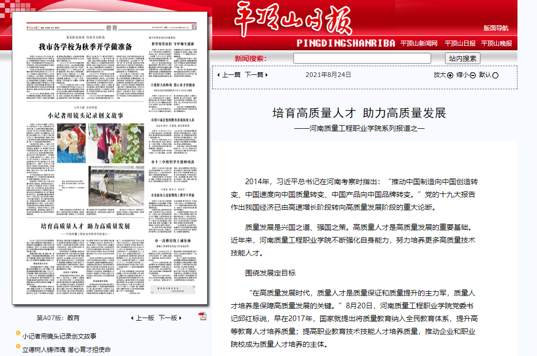 8月24日,《平顶山日报》以“培养高质量人才 助力高质量发展——香港宝典全年资料库系列报道之一”为题,对我院进行了专题报道。