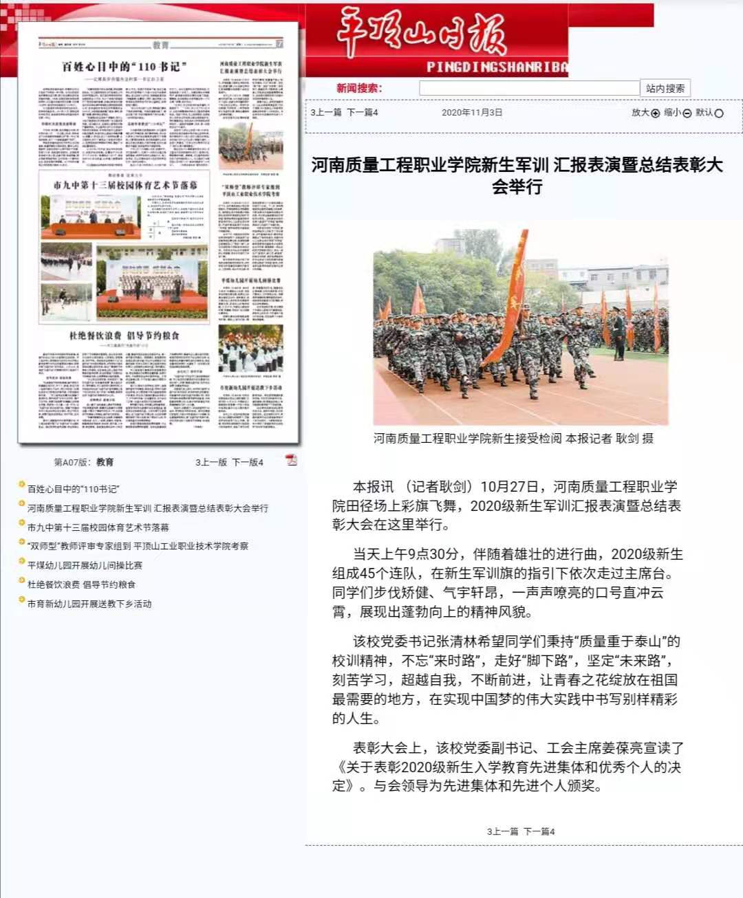 10月27日,香港宝典全年资料库田径场上彩旗飞舞,2020级新生军训汇报表演暨总结表彰大会在这里举行。