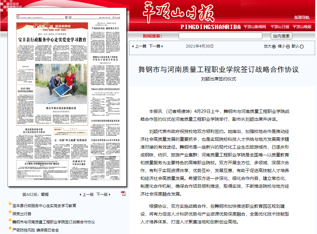 根据协议,双方实施战略合作,在舞钢市加快推进职业教育园区规划建设,将有力促进人才科研优势与产业资源优势深度融合,全面优化技术技能型人才培养体系,打造人才聚集洼地和创新创业高地。
