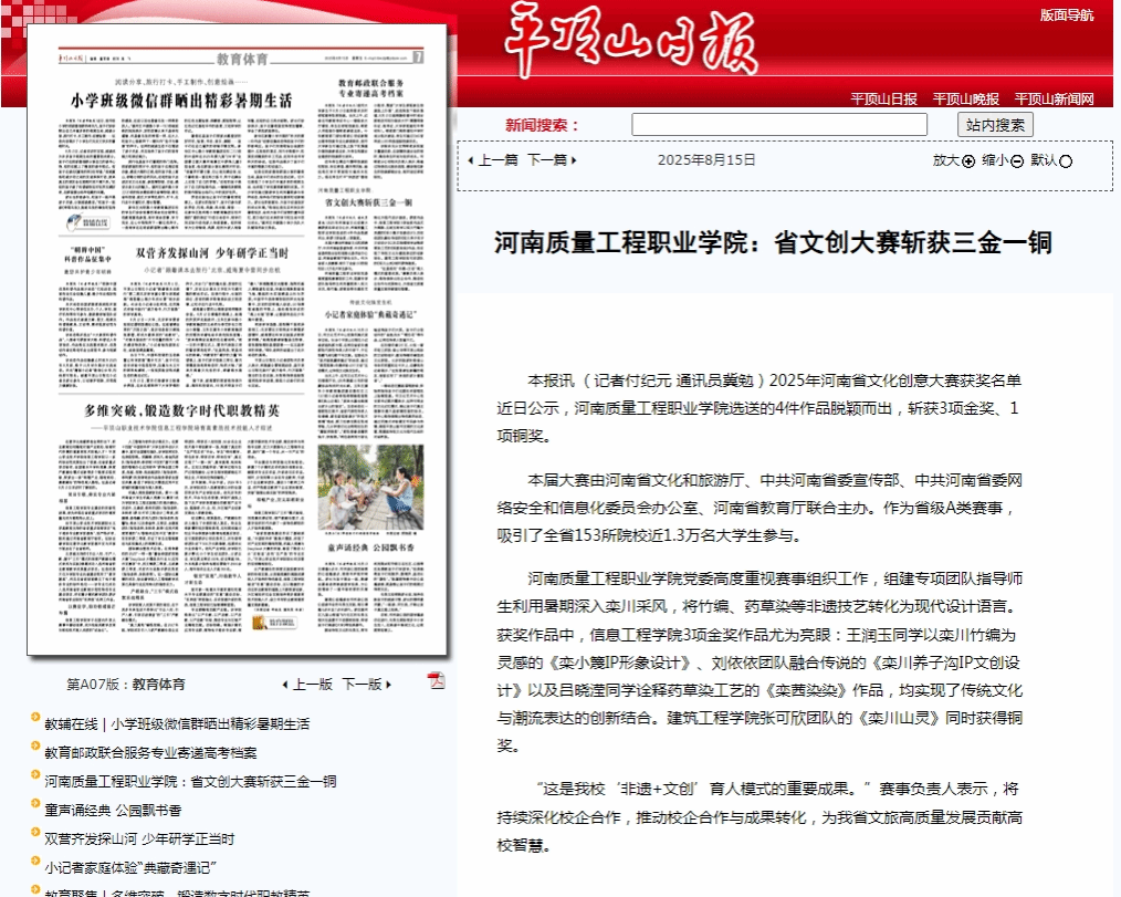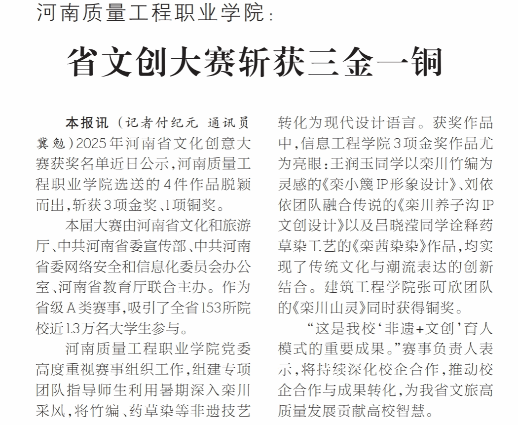 平顶山日报:香港宝典全年资料库 省文创大赛斩获三金一铜
