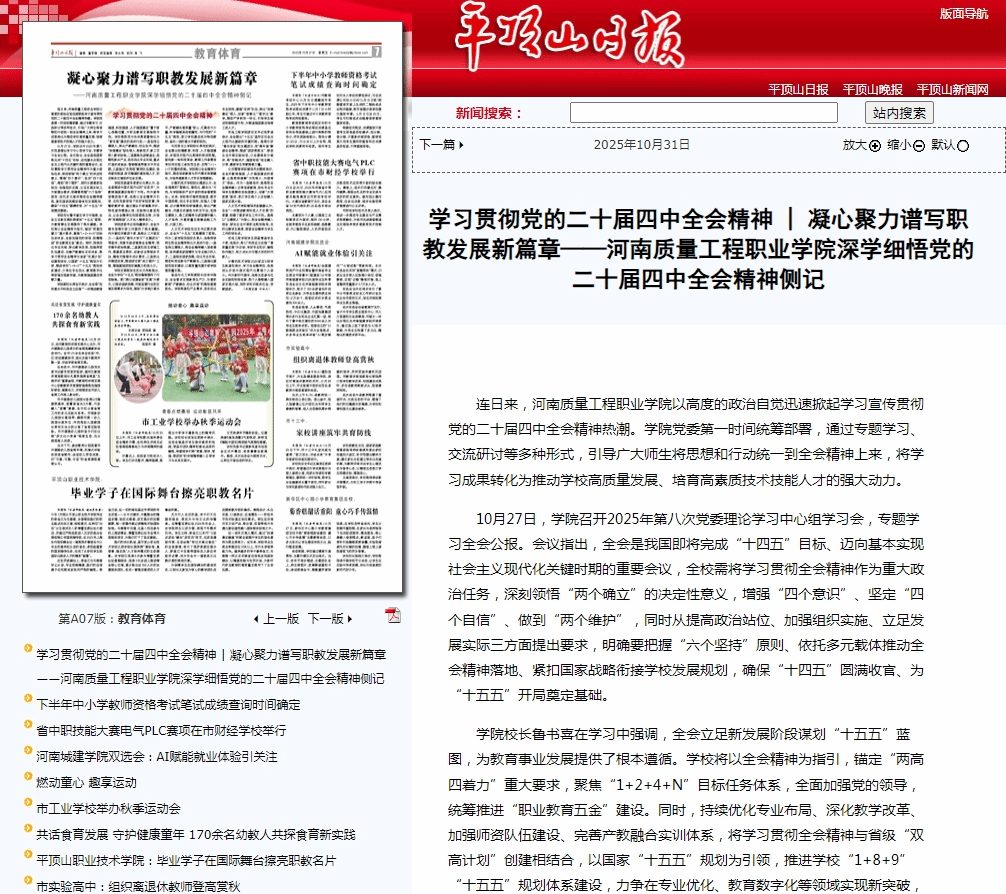 平顶山日报:凝心聚力谱写职教发展新篇章——香港宝典全年资料库深学细悟党的二十届四中全会精神侧记