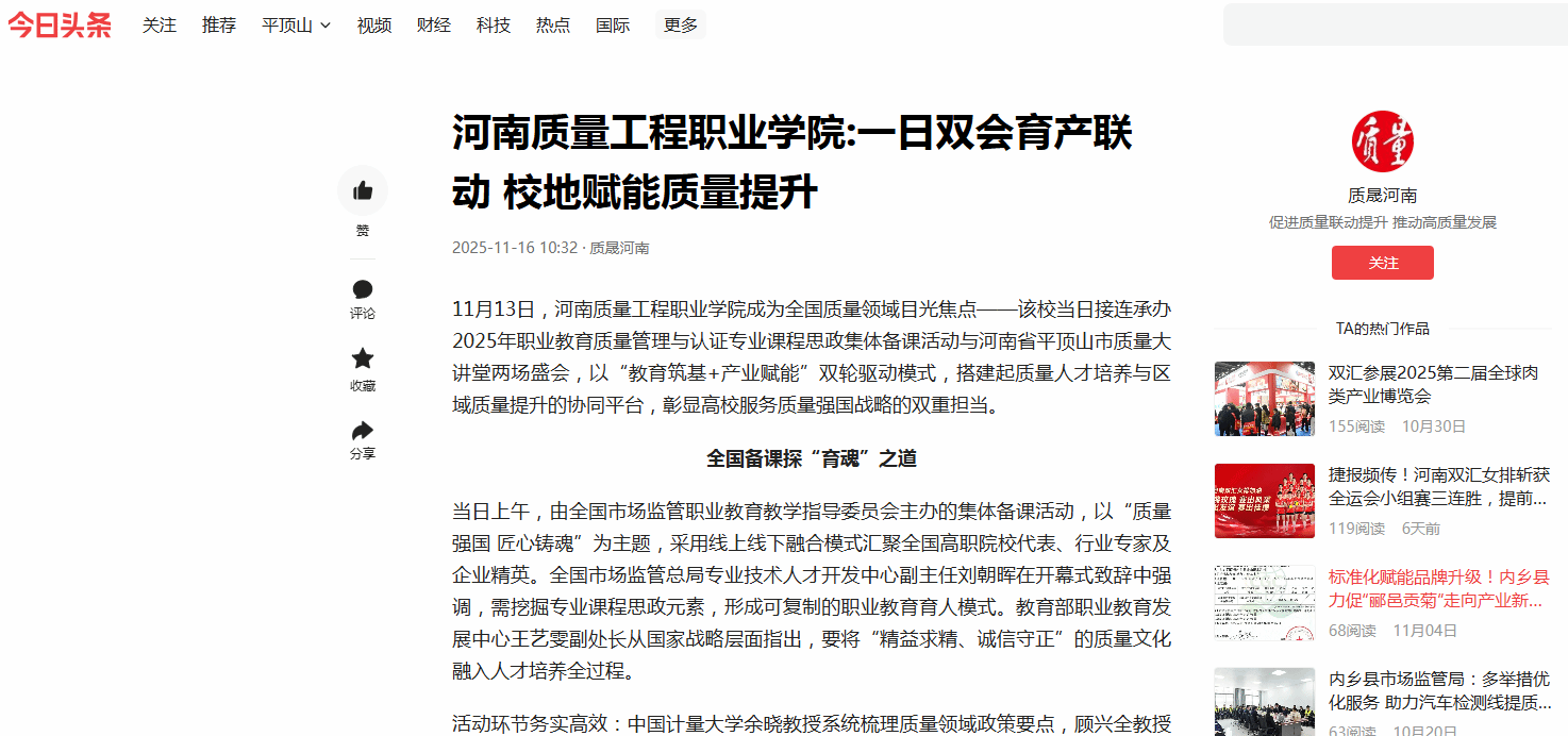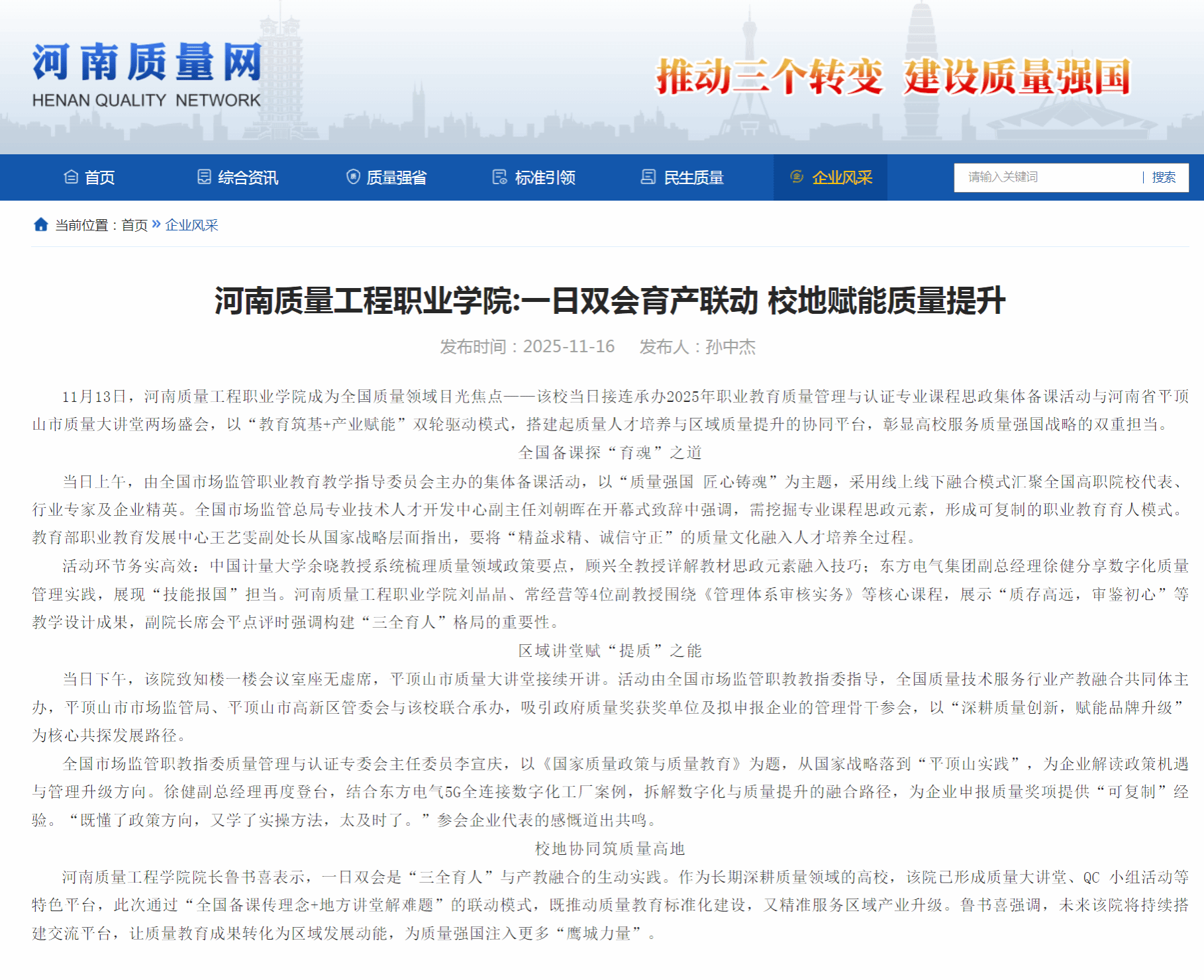 中国质量报:2025年全国职业教育质量管理与认证专业课程思政集体备课活动举办
