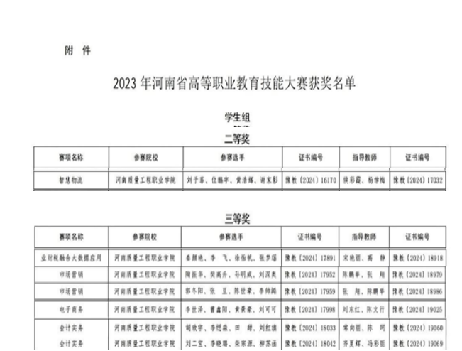 近日,河南省教育厅下发了《关于公布2023年河南省高等职业教育技能大赛获奖名单的通知》(教办职成〔2024〕273号),本次技能大赛经管学院学生喜获二等奖1项、三等奖6项。