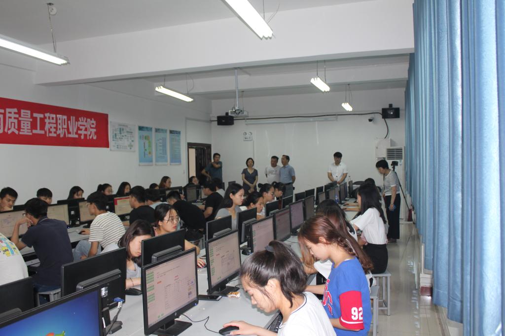 教学工作是学校工作中的重中之重,教学质量是学校生存发展的生命线,也是我院历来高度重视的一项重要工作。为深入贯彻教育部《关于深化职业教育教学改革全面提高人才培养质量的若干意见》及教育部办公厅《关于建立职业院校教学工作诊断与改进制度的通知》要求,全国财政职业教育教学指导委员会决定在全国高职院校开展会计职业能力测评。为发挥职业能力测评在教育教学工作中的重要作用,进一步了解学院会计专业教学水平,提升会计专业教学质量,作为全国首批30所试点院校之一,我院经管系16级会计专业近百名学生2018年6月15日上午参加了出纳、成本会计、往来会计三个岗位的测评。学院常务副院长徐宗华、教务处处长蔡花真、副处长王民钢、张留成到测评现场进行了巡视。